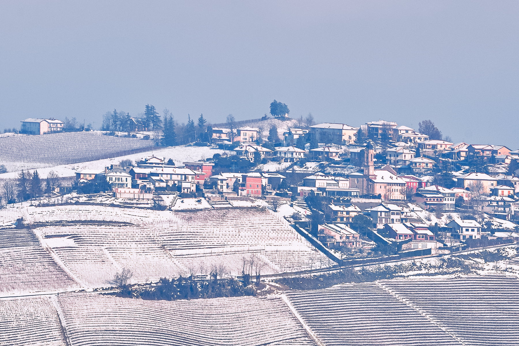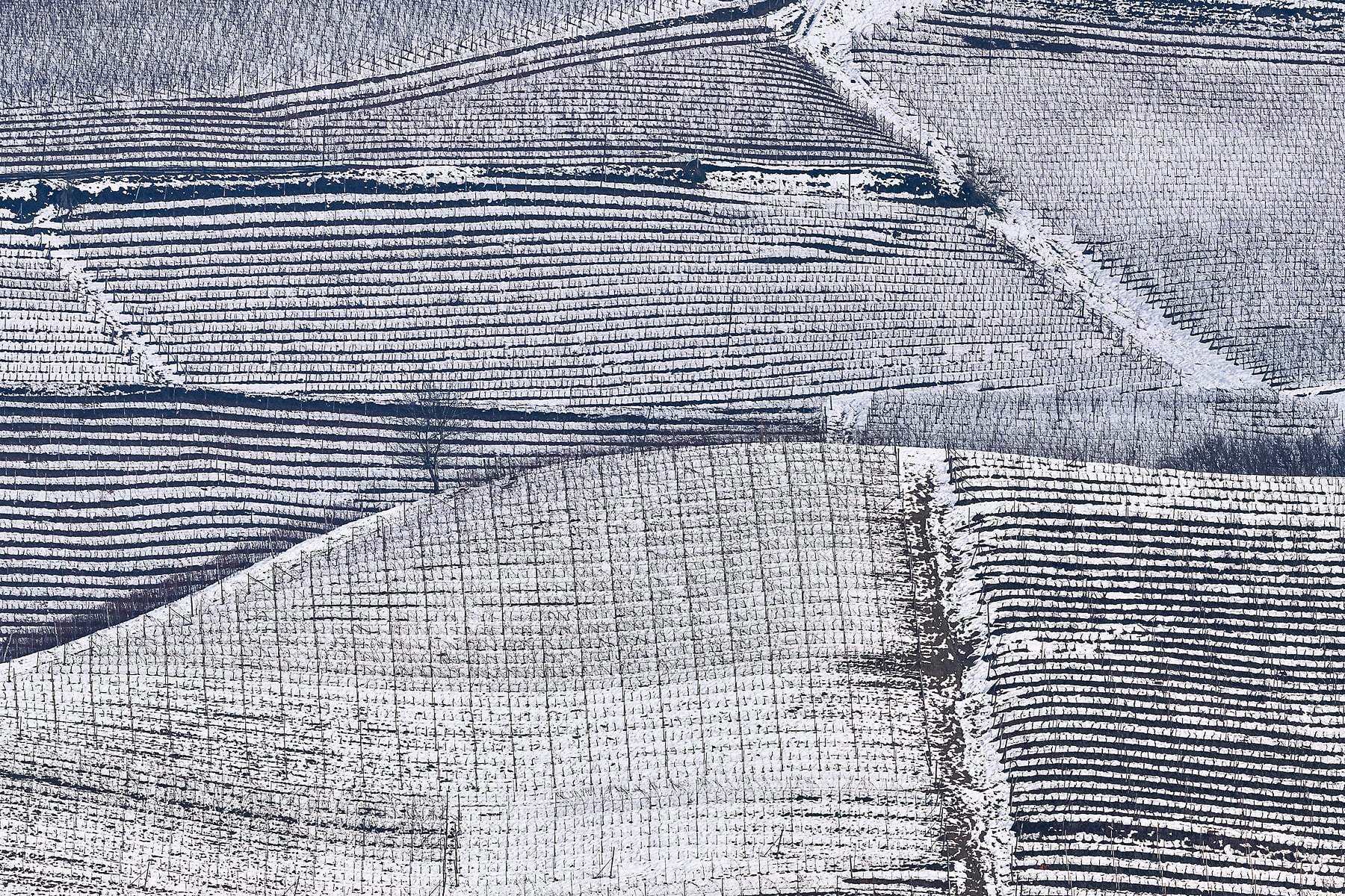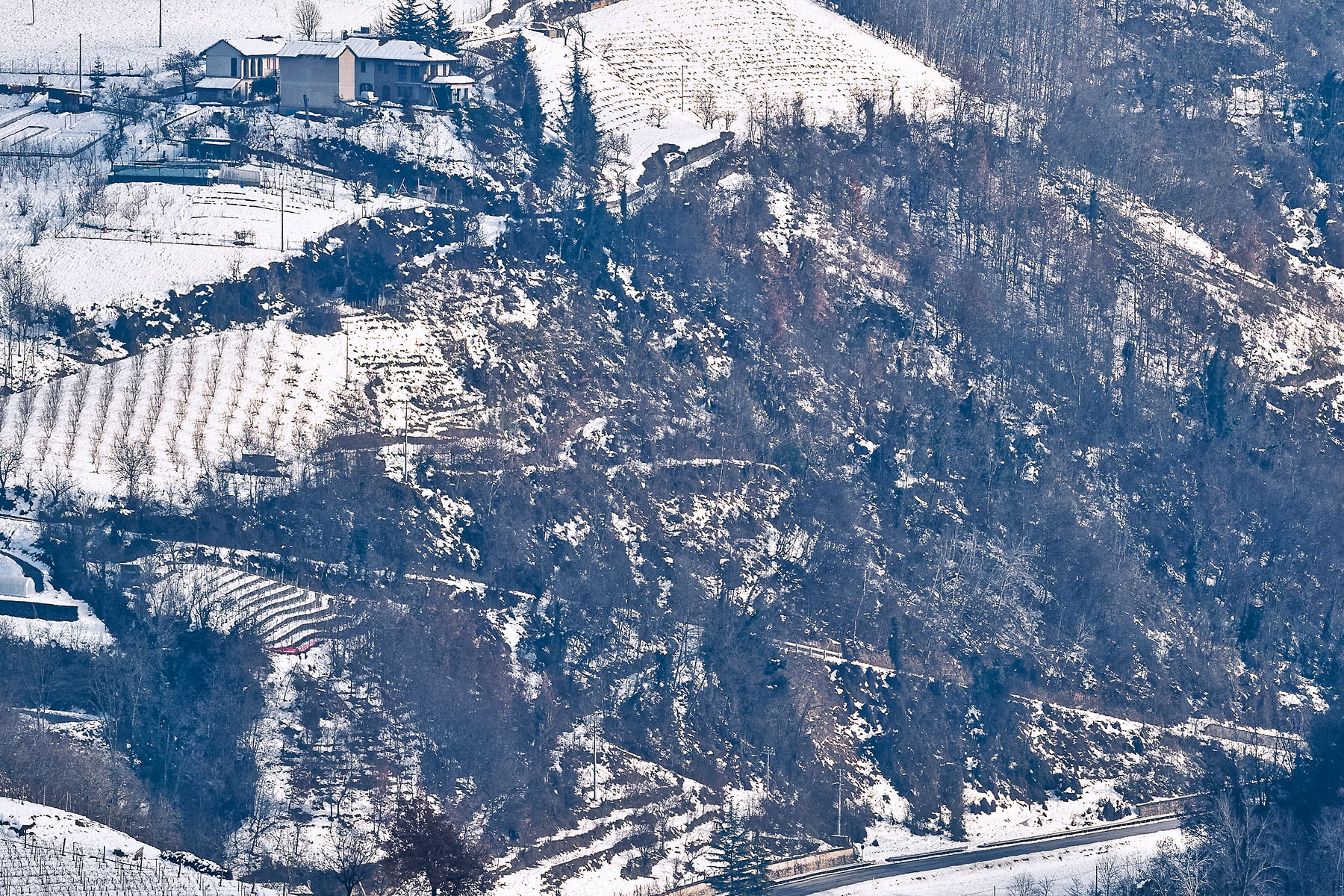 In this photo you can wander with your eyes looking for towers and churches perched on the highest peaks of the hills, the farms with their vineyards, the villages with their roads, in an endless path, all under a soft blanket of snow, abundant in this winter