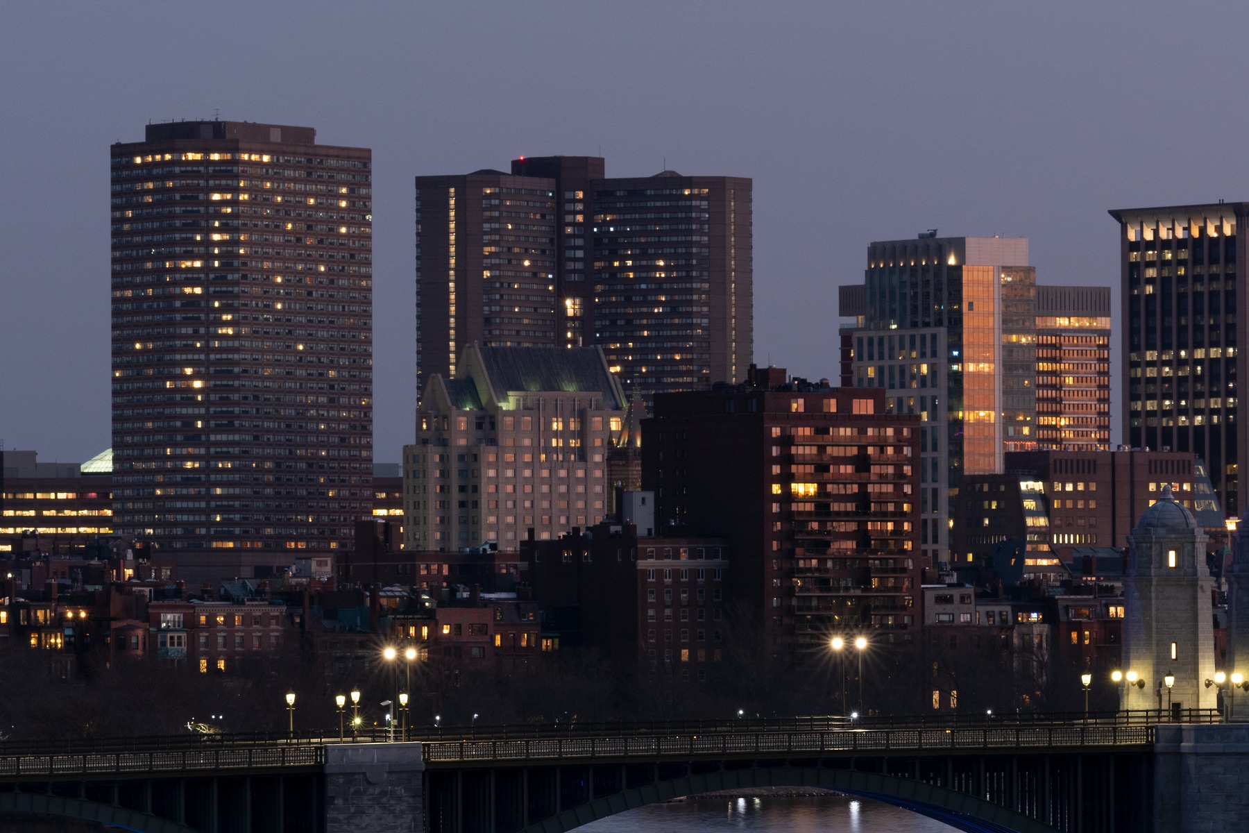 The Back Bay skyline is as distinctive a skyline as the downtown Boston skyline is. They both have a waterfront to them but that's about where the similarities stop. I've always liked viewing the Back Bay skyline from this location. The sun sets to frame right so it gives a nice relief feel to the buildings.