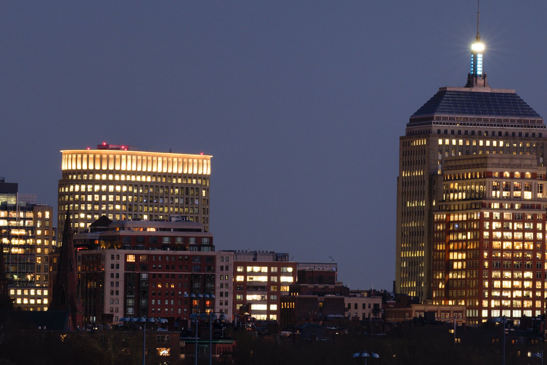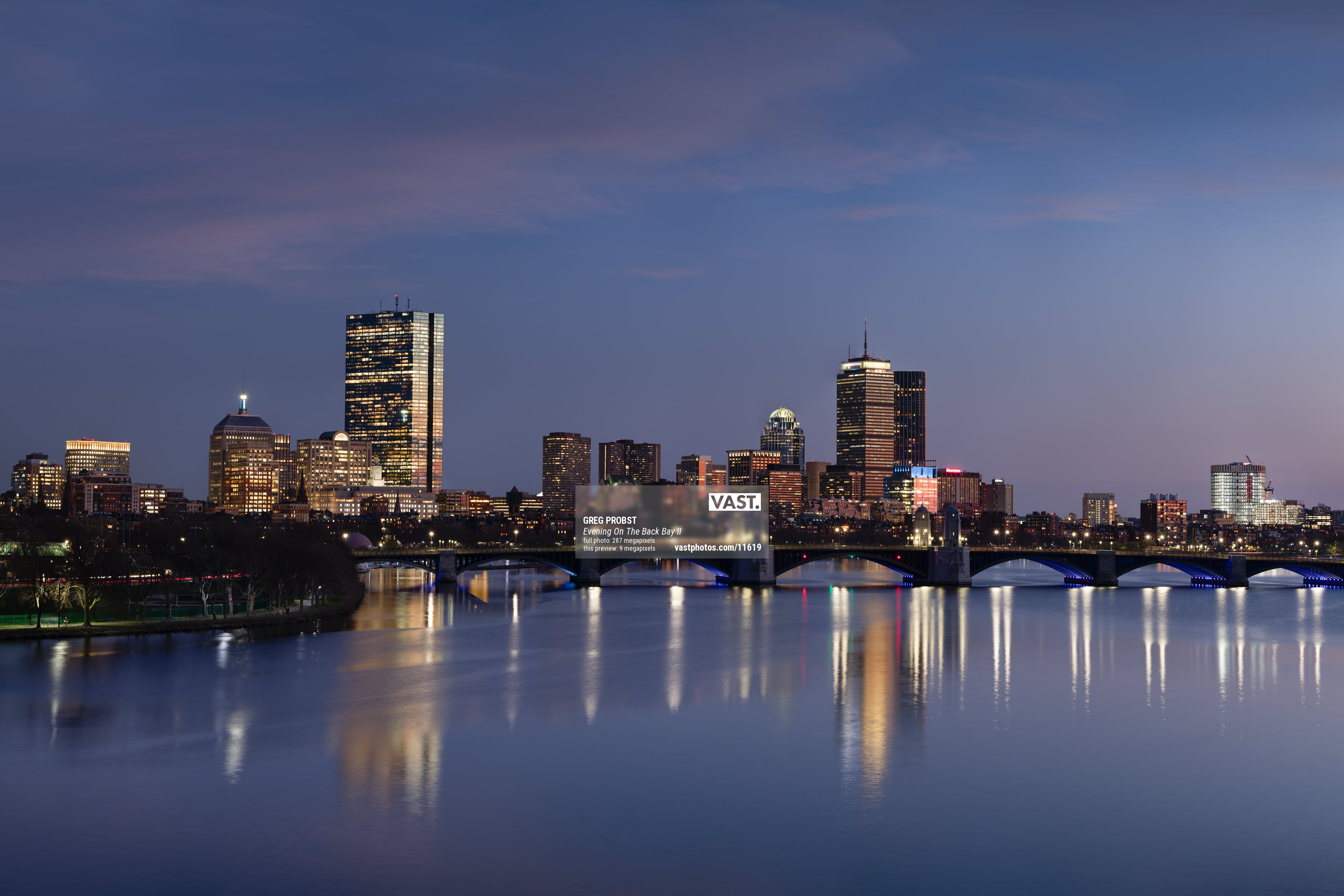 The Back Bay skyline is as distinctive a skyline as the downtown Boston skyline is. They both have a waterfront to them but that's about where the similarities stop. I've always liked viewing the Back Bay skyline from this location. The sun sets to frame right so it gives a nice relief feel to the buildings.