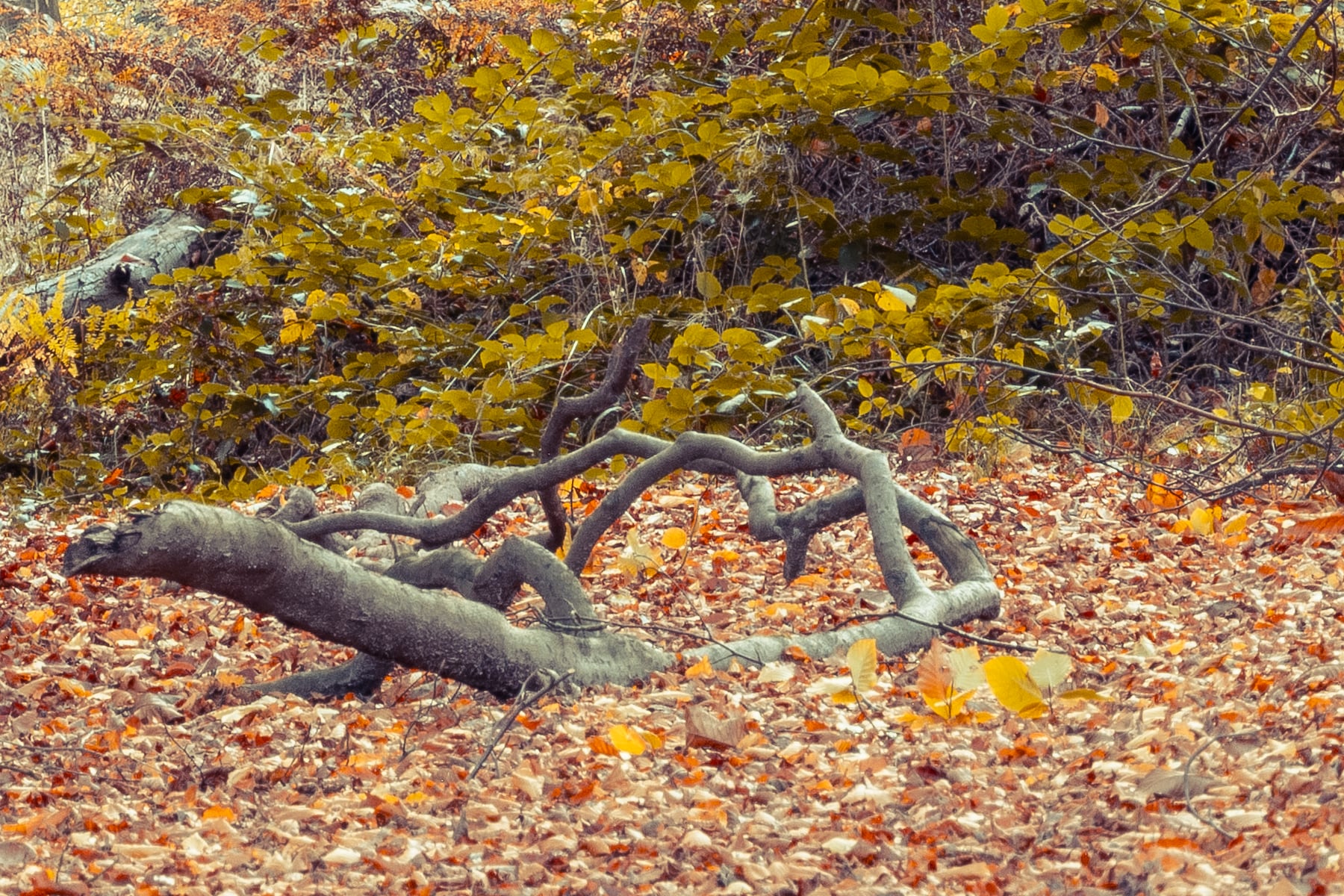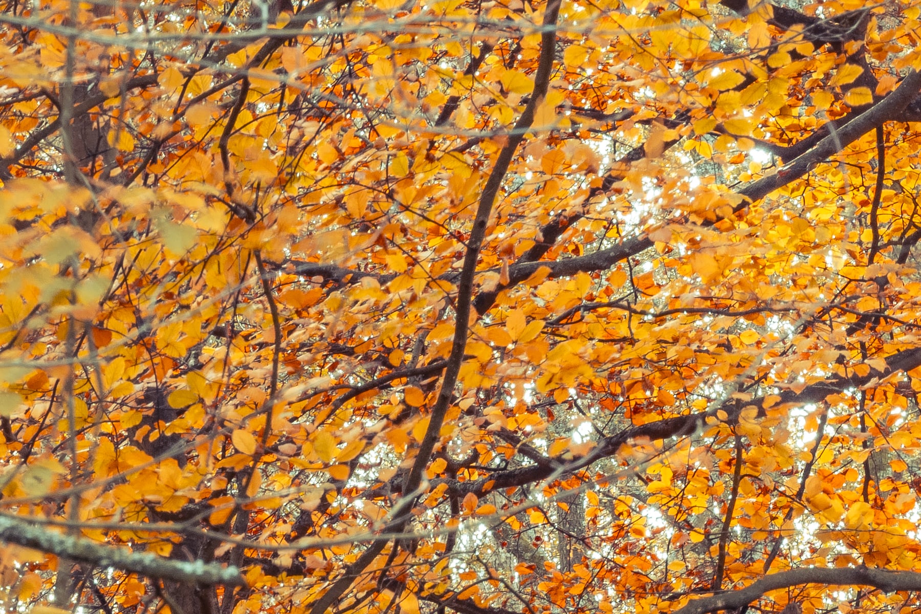 A serene autumn forest bathed in soft golden hues captures the essence of seasonal beauty. Towering trees with slender trunks stand tall, their branches adorned with delicate yellow leaves that shimmer in the gentle light. The forest floor is blanketed with fallen leaves, adding depth and texture to the scene, while scattered logs and twisted branches enhance the untouched, natural feel. A winding pathway leads deeper into the woodland, inviting quiet exploration and moments of reflection. The muted tones and diffused light create a tranquil, dreamlike atmosphere, evoking a sense of peace and nostalgia.