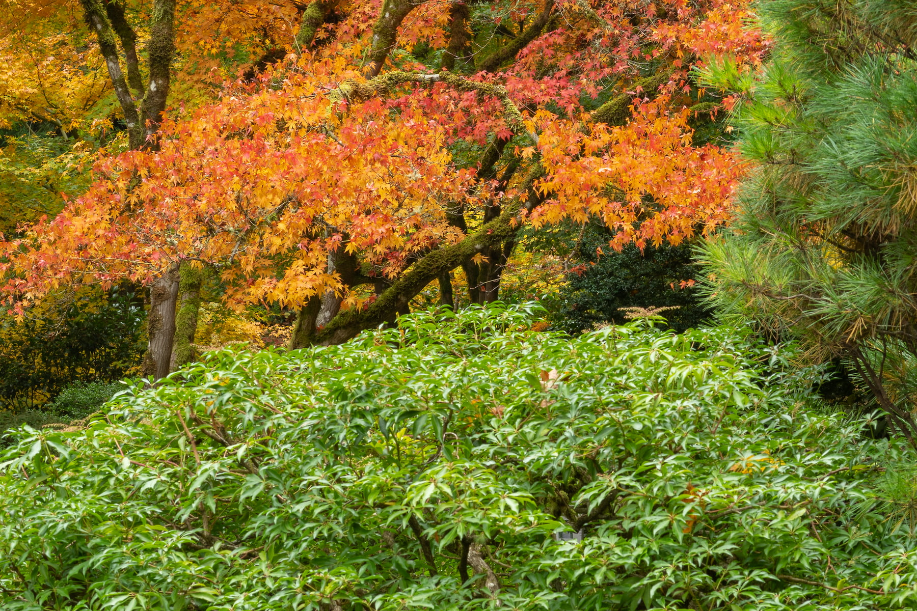 245 megapixels! A very high resolution, large-format VAST photo print of autumn foliage in a garden with a pond; photograph created by Greg Probst in Portland Japanese Garden, Portland, Oregon.