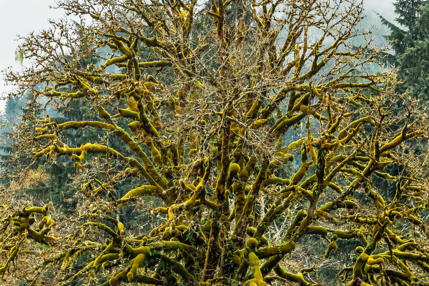 On the shore of the Middle Fork of the Snoqualmie River, massive trees make the most of the narrow strip of land between the river and the steep mountains above. Here, deciduous trees such as the big leaf maple host literal tons of mosses and ferns, while an assortment of evergreen trees including western red cedars, sitka spruces and Douglas fir trees vie for the title of the greatest tree in the region. The jury is still out.