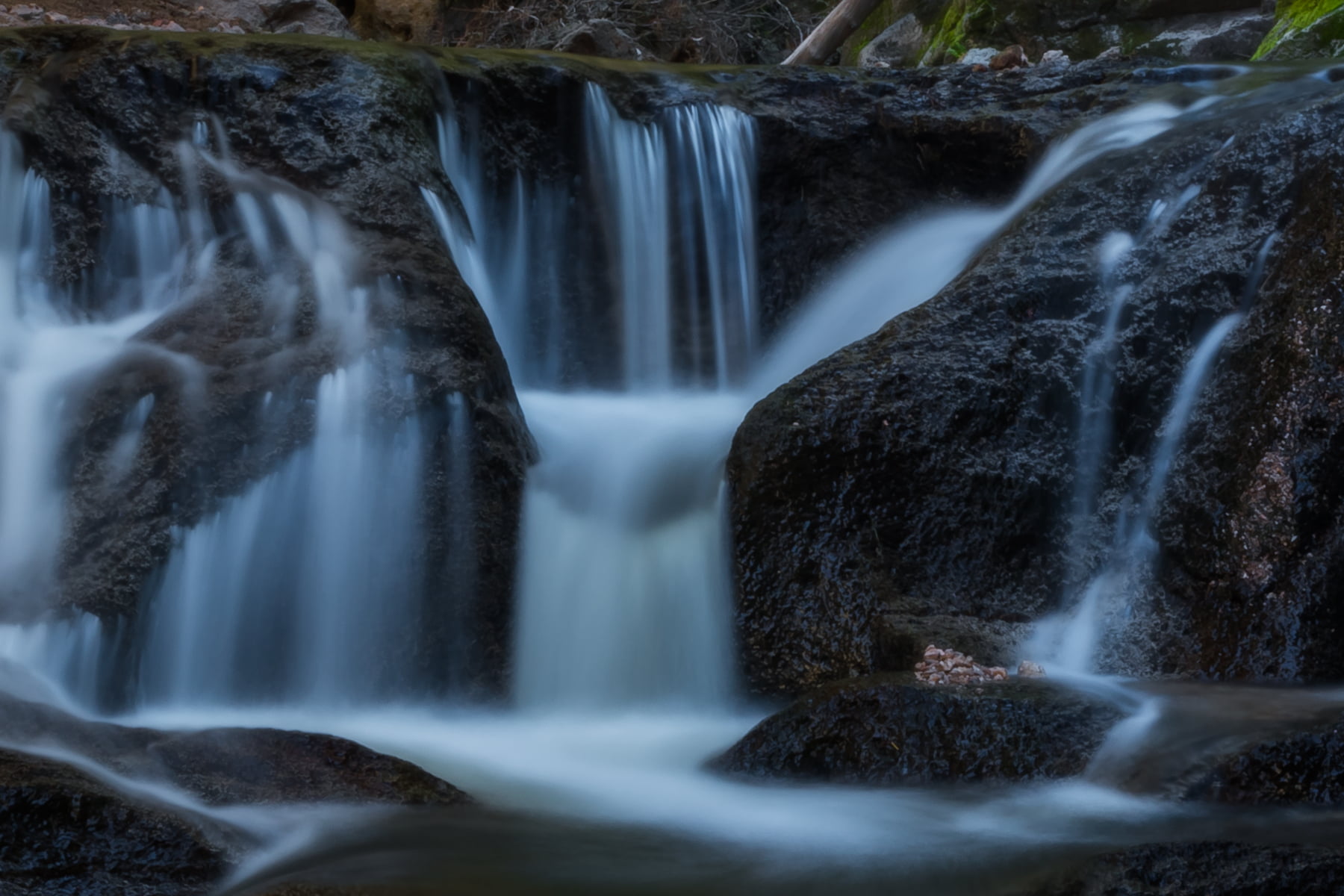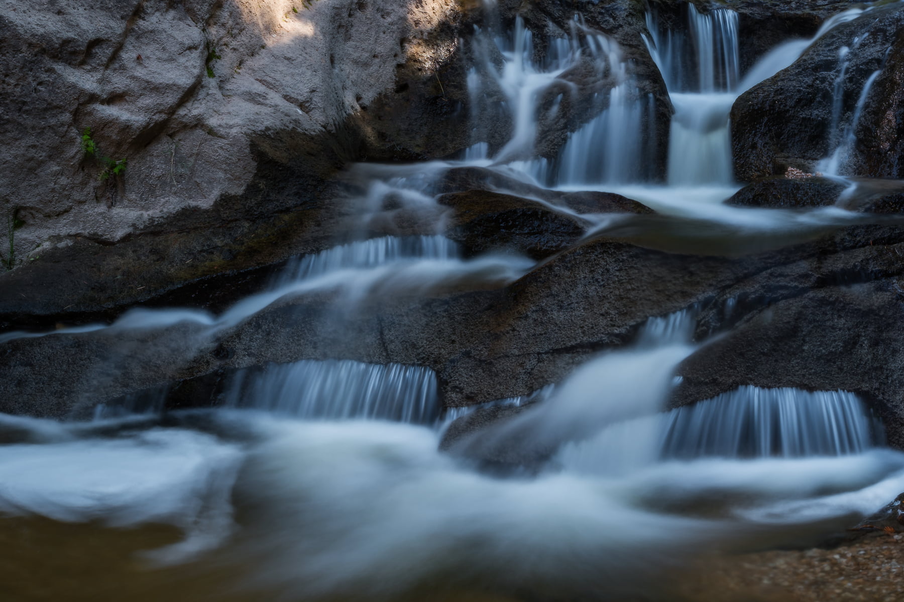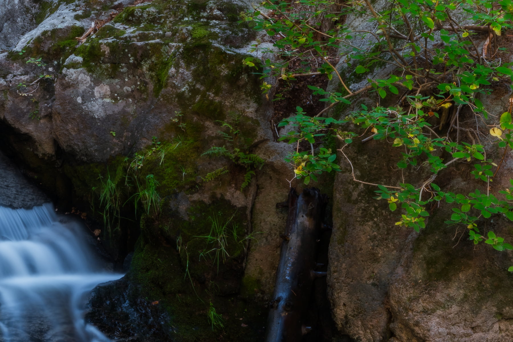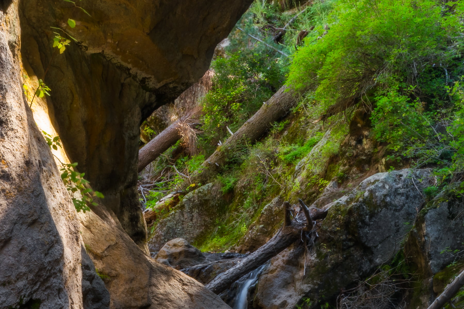 Up in the Jemez Mountains of New Mexico, the Jemez River winds its way from the Valles Caldera (a dormant supervolcano!) down to the Rio Grande. Along the way it passes through virtually inaccessible canyons and over many waterfalls and cascades. I hiked for three miles (most of it in waist deep water) to reach this hidden and rarely visited place. I had it all to myself for the several hours I spent there in silent meditation with all of nature around me.