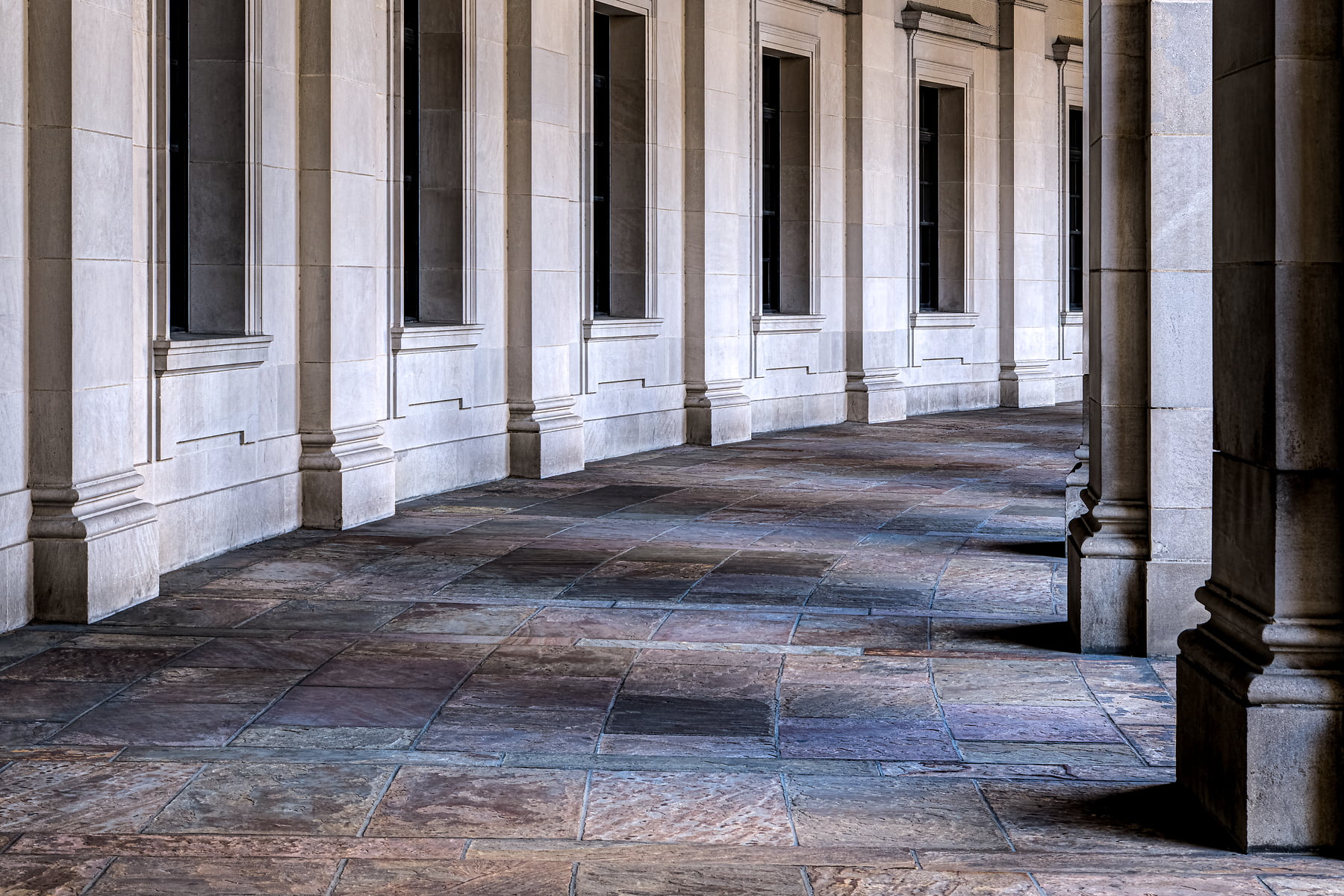 Early on a cold Saturday morning in February I made my attempt to avoid the crowds of government workers who flood this hallway during the week. I started the morning with my planned sunrise shot of the U.S. Capitol Building & Reflecting Pool found here. I then hopped on a bicycle from the bike-share and whisked over here and was pleased to find few people and perfect light casting deep shadows on the hallway. Any day taking photos in Washington, D.C. is a good one, yet it’s satisfying to reflect after shooting and to know you were able to capture your pre-visualized images.