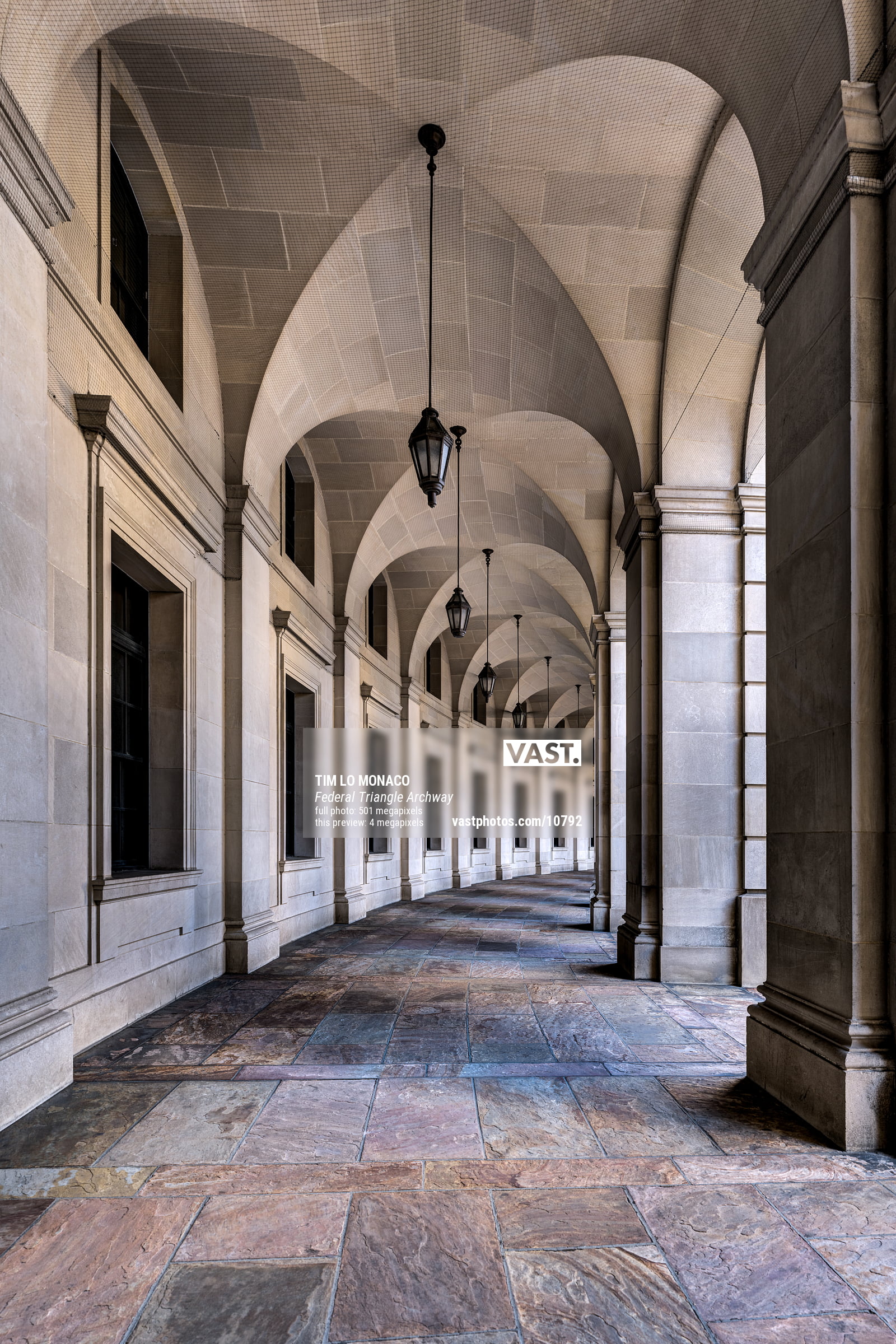 I noticed this archway one day as I headed to the Smithsonian Museum of Natural History and knew I had to come back one day with my gear to take a proper photo. Washington, D.C. has a distinct feel downtown with myriad impressive buildings with their neoclassical architecture. I was taken by the simplistic beauty of the curved walkway with its windows and hanging lanterns guiding my eye down the path of geometric shapes.