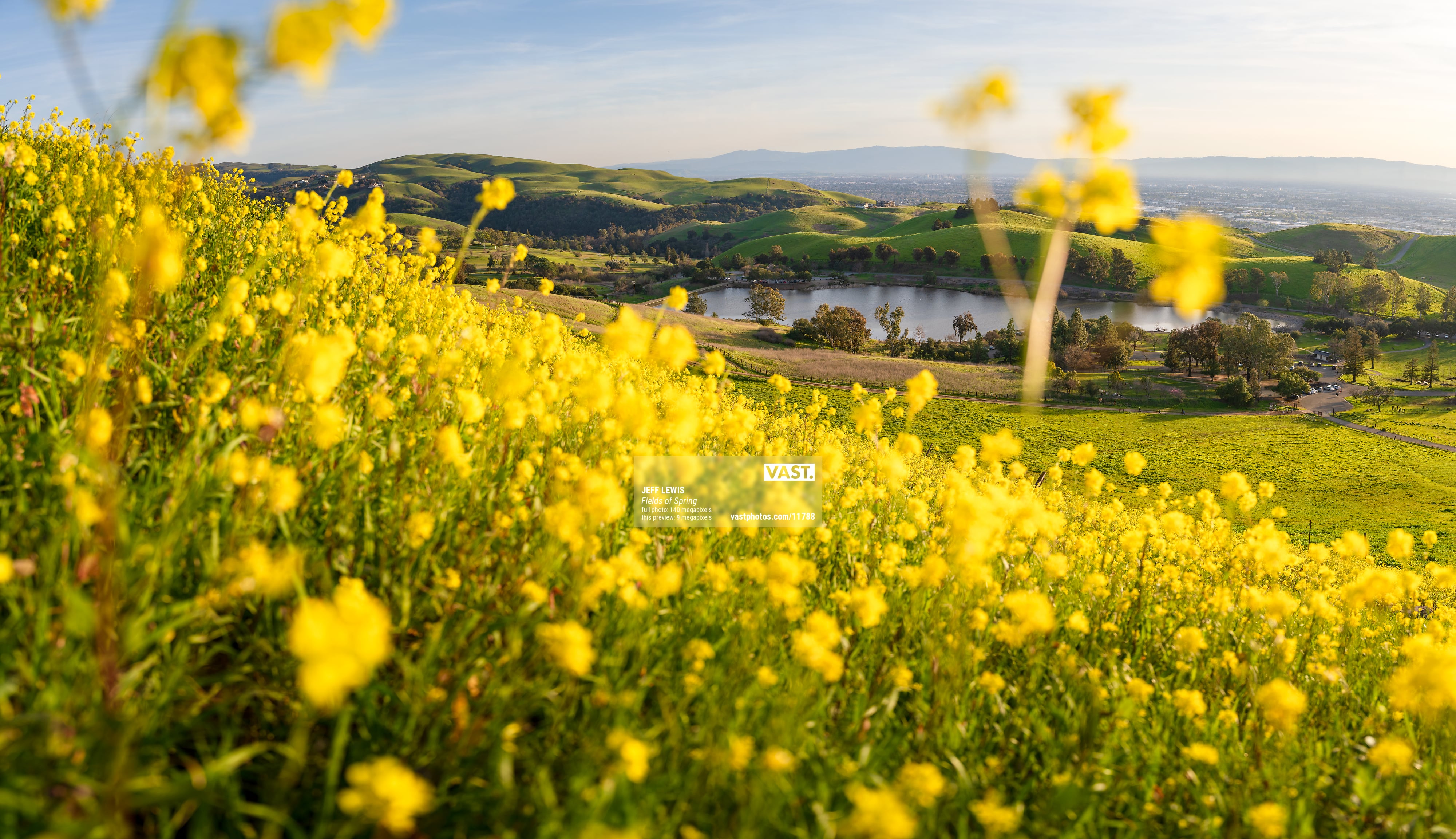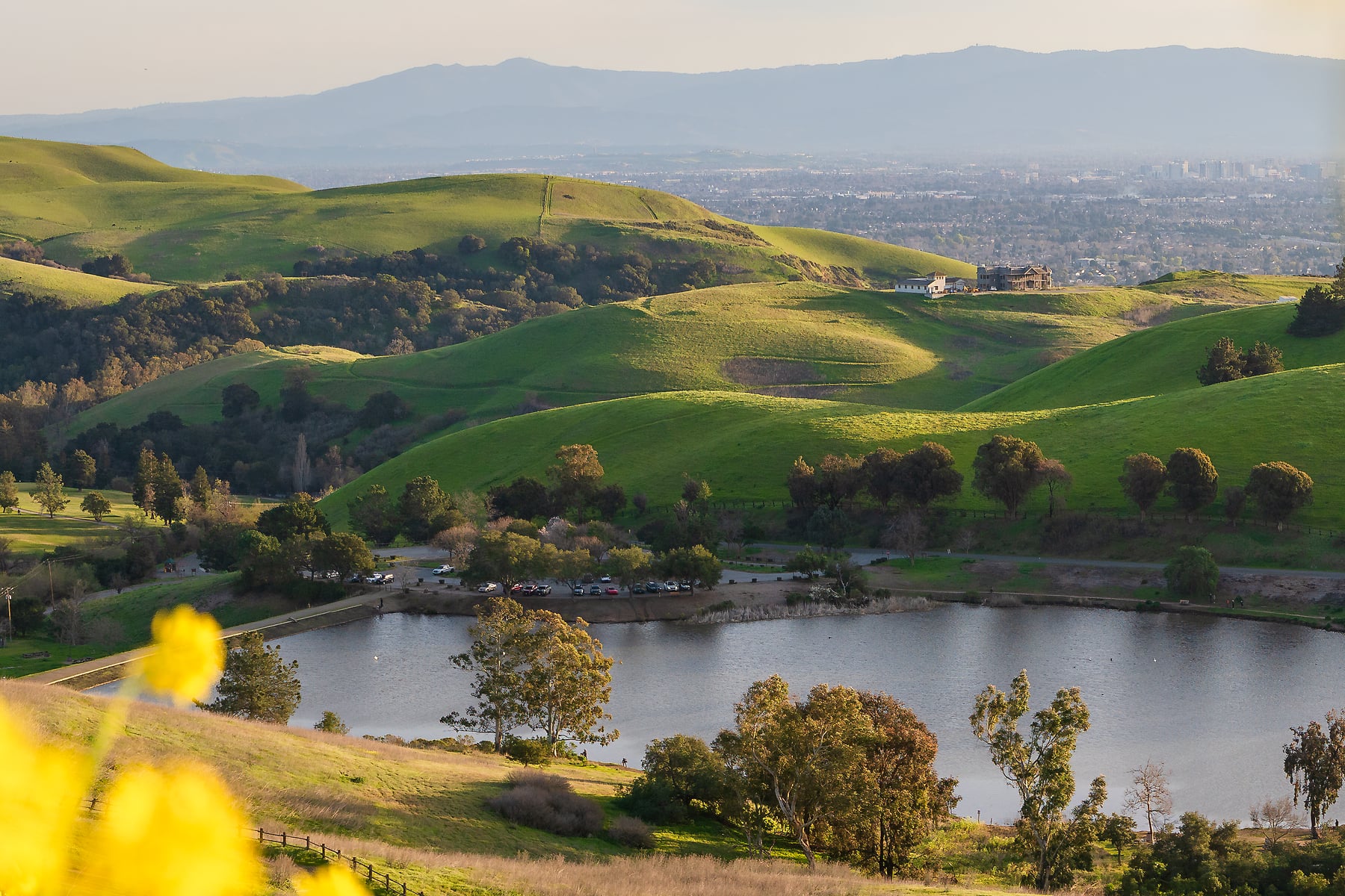 I had a hunch these hills would be spectacular in the evening. I went for a hike, and this is what I found! I loved the vibrant yellows in the mustard flowers, so decided to give them the bulk of the frame. The lake is Sandy Wool Lake, in Milpitas, and behind it is San Jose and Silicon Valley.