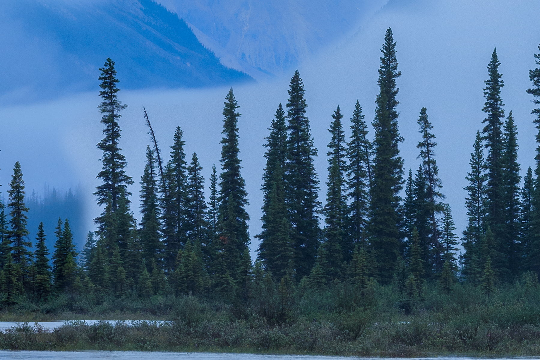 This VAST photo was captured just north of Rampart Creek along the North Saskatchewan River in Banff National Park. The river is usually low and sifts course across braided channels in this area, but on this occasion, it was at its peak, spilling over the walking path all along the river.