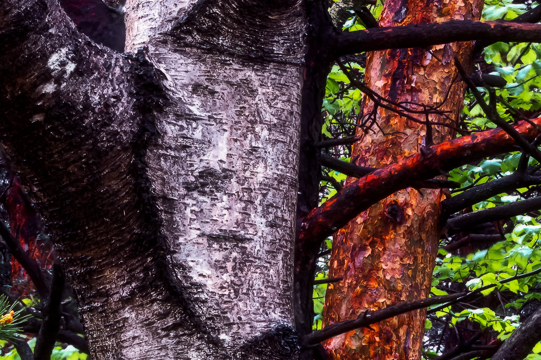 I took advantage of a few rainy days, long awaited after four months of absolute drought and wind, to be able to immortalize, with a very high resolution photo, this part of the undergrowth where there are many birches and young pines, which share the territory with huge boulders present since the last glaciation and which have become real natural monuments.