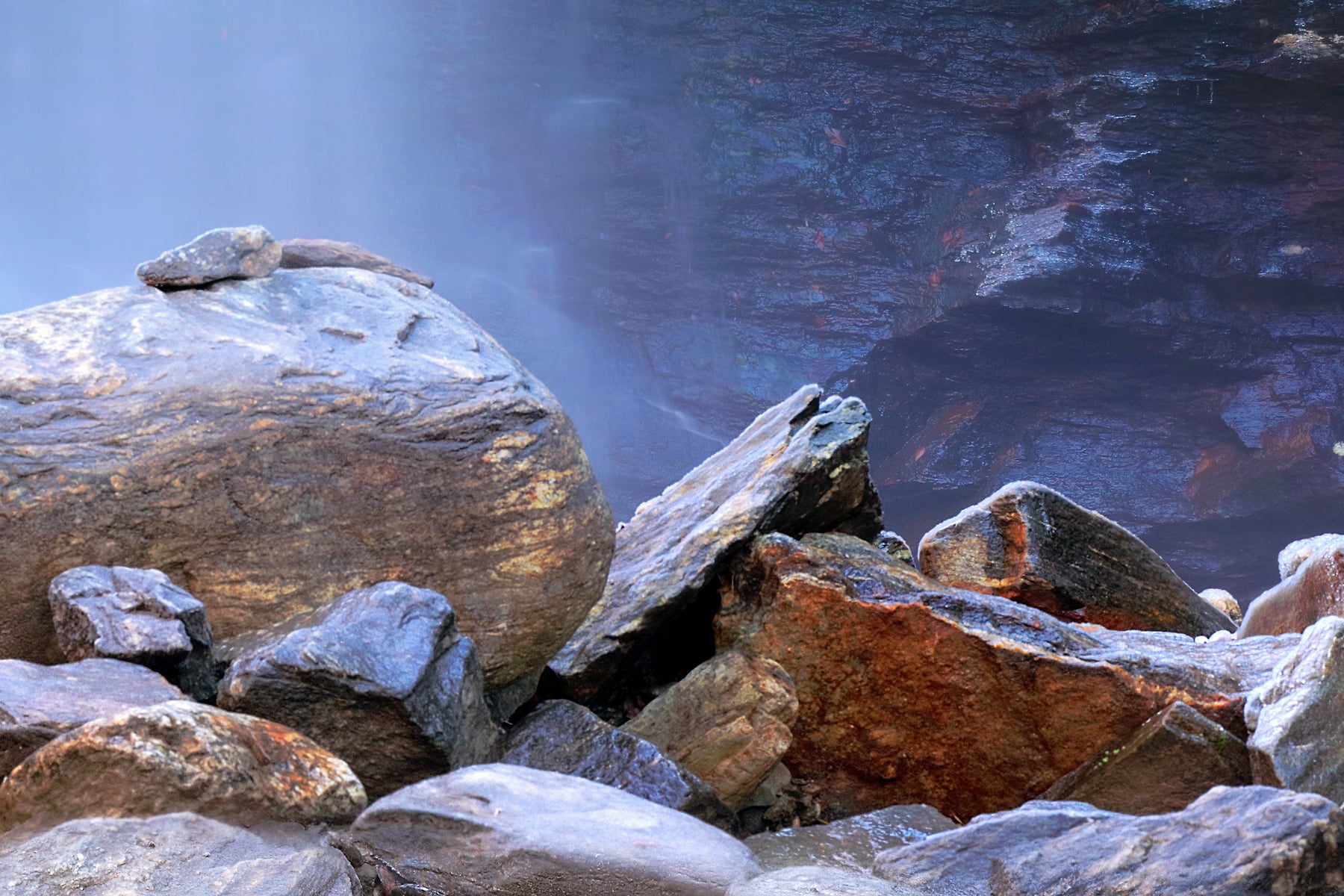 During the winter months, the falls often freeze over, creating an even more spectacular and unique sight. It was during one such winter that I captured this large format photograph of the falls, with ice forming over many of the rocks, making it a very difficult place to get to in such weather.