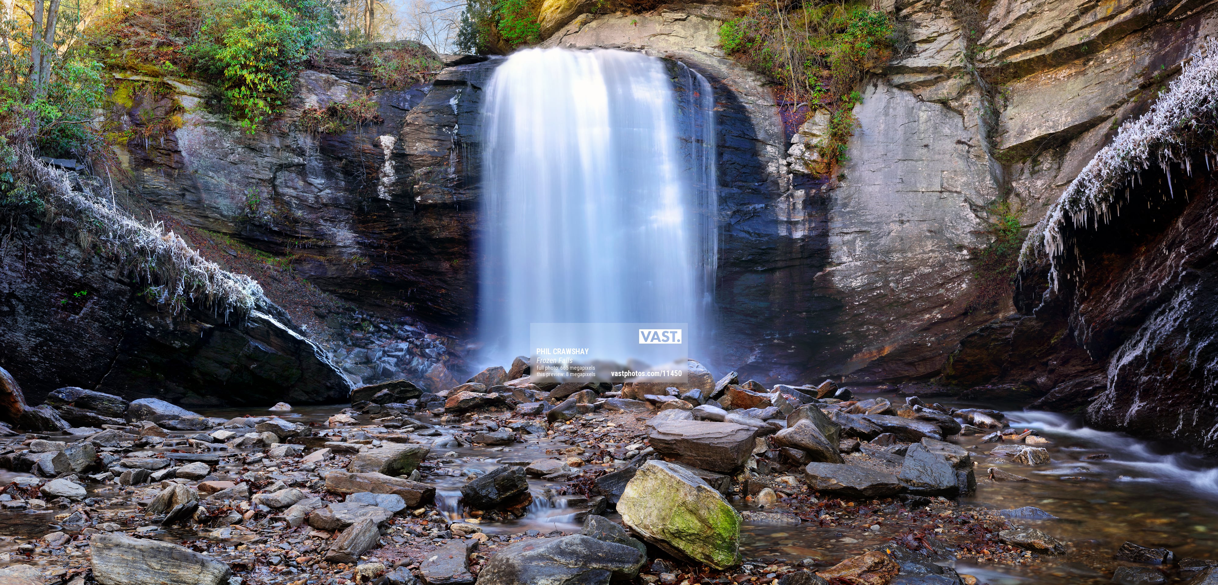 The result is a breathtaking photograph that perfectly captures the essence of Looking Glass Falls in all its winter glory. The rugged rock formations, the cascading water, and the intricate details of the ice formations are all rendered in exquisite detail and stunning clarity.