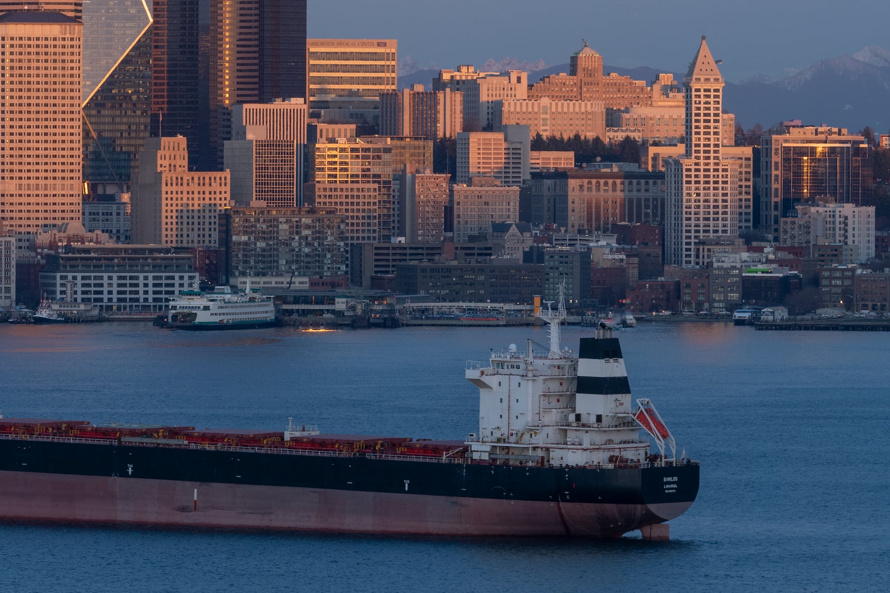 That sweet evening light on a city skyline is enhanced in Seattle by having Elliott Bay in the foreground with a ferry boat and a container ship at anchor. This is an iconic view of Seattle from West Seattle (a part of the city). The other iconic views are my images "Hometown" and "Early Morning Light..." and "Evening Light....." I will be working on more unique views of the city in the future so stay tuned.