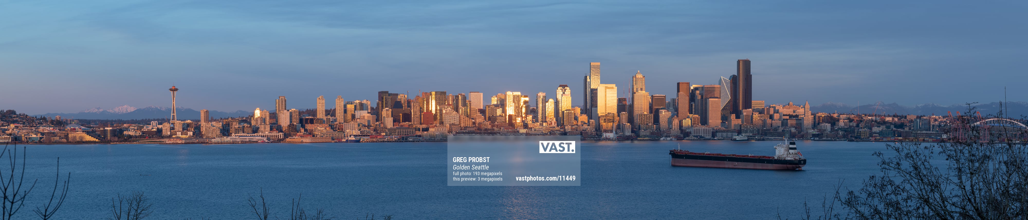 A close-up of "Golden Seattle" by Greg Probst: an ultra-high-resolution VAST photo.