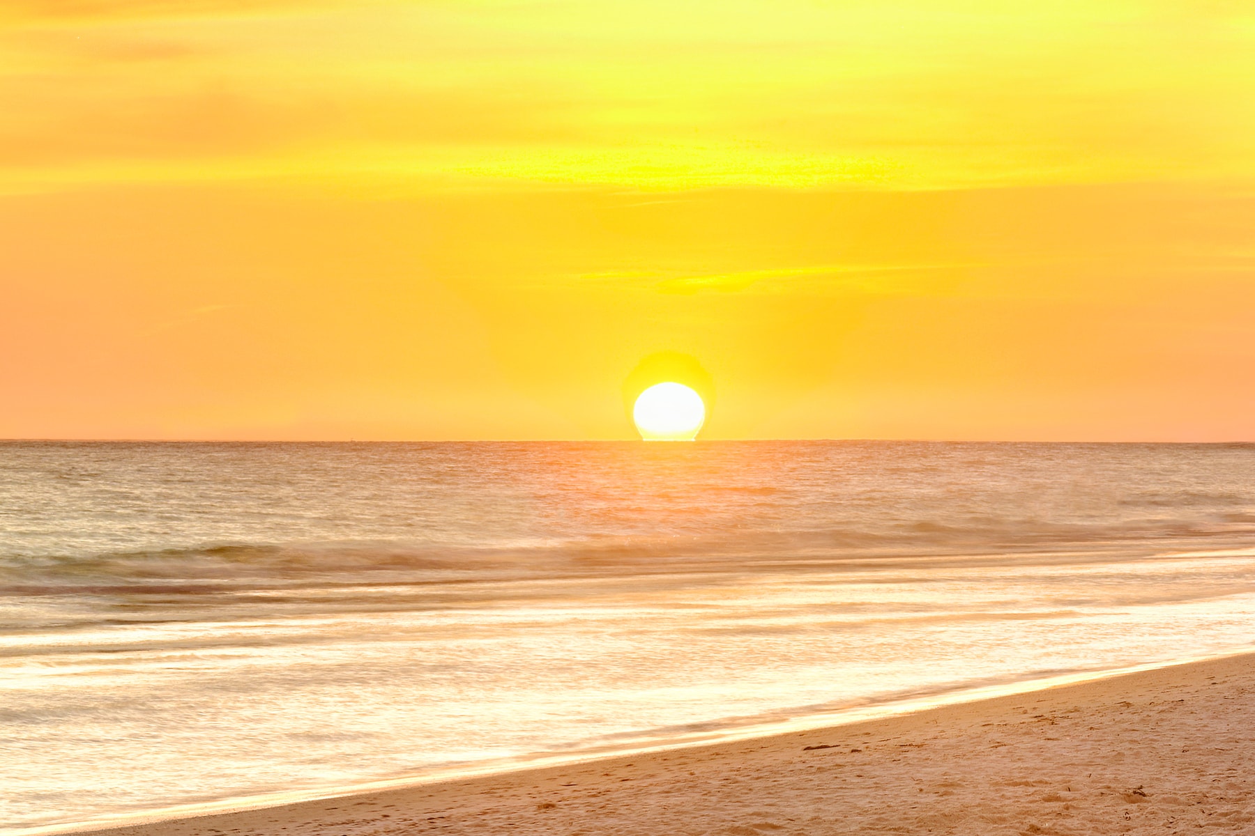 A beautiful sunset on Lido Beach, Sarasota, one of the best beaches in all of Florida. Although the sky and sunset look beautifully clear, an intense thunderstorm was right behind me which contributed to the surreal lighting this image displays.
