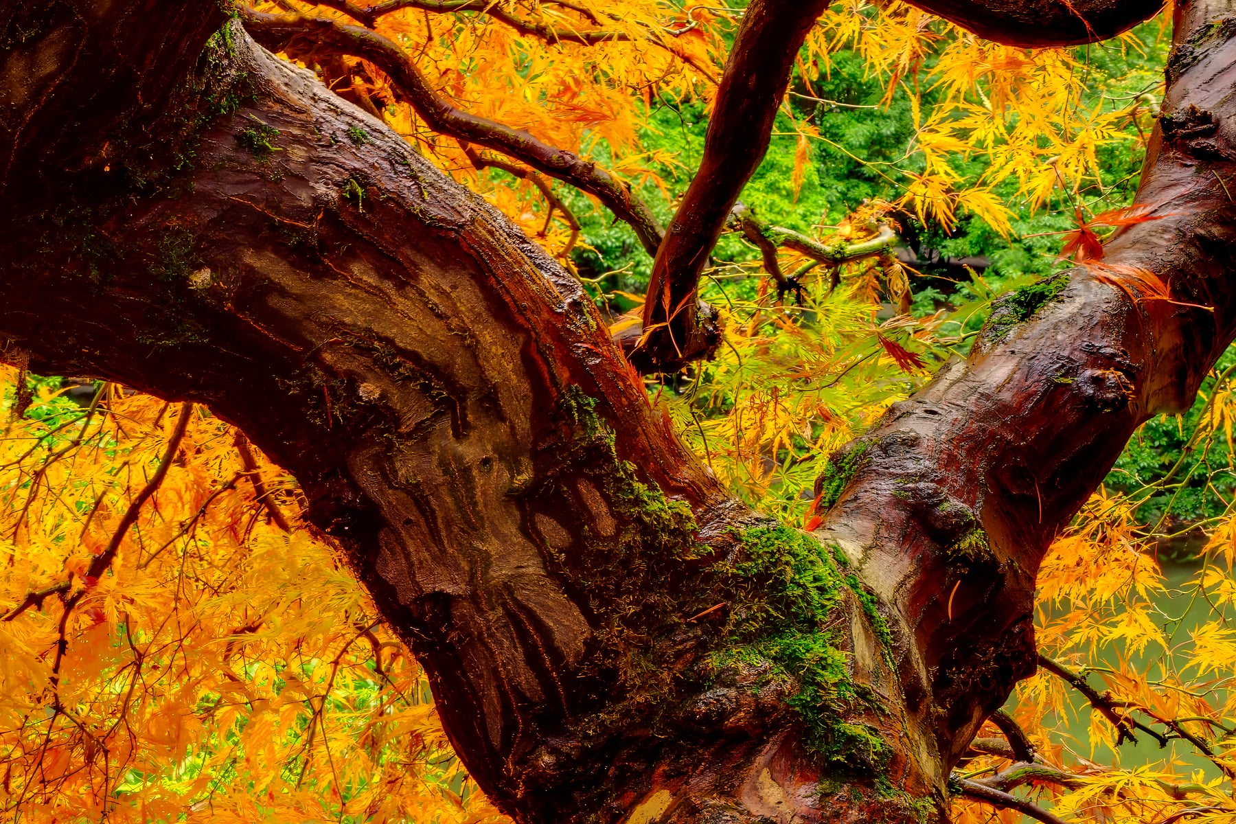 Located in Portland, Oregon, this one-of-a-kind Japanese Maple tree transforms into a masterpiece of nature come fall.