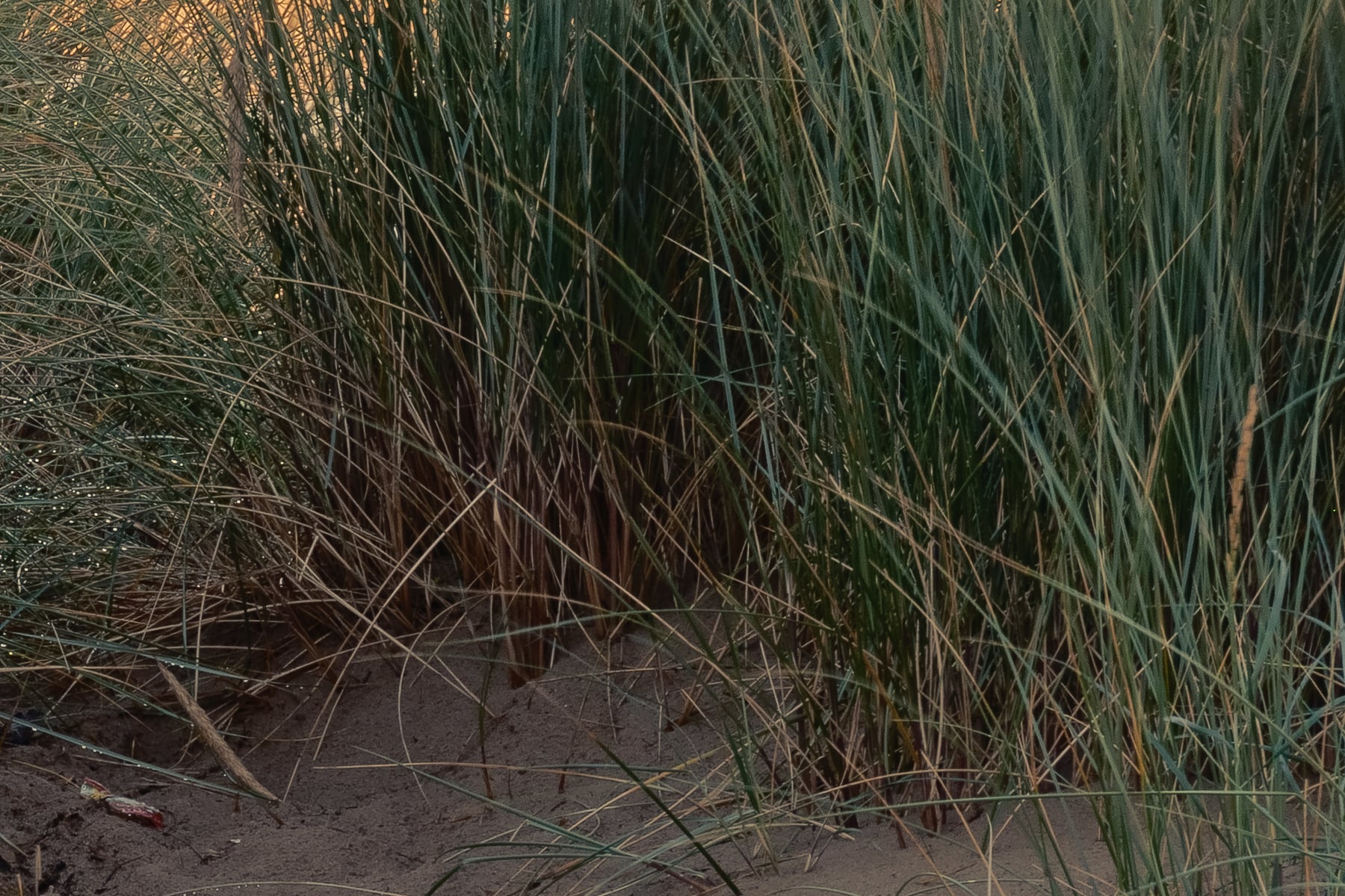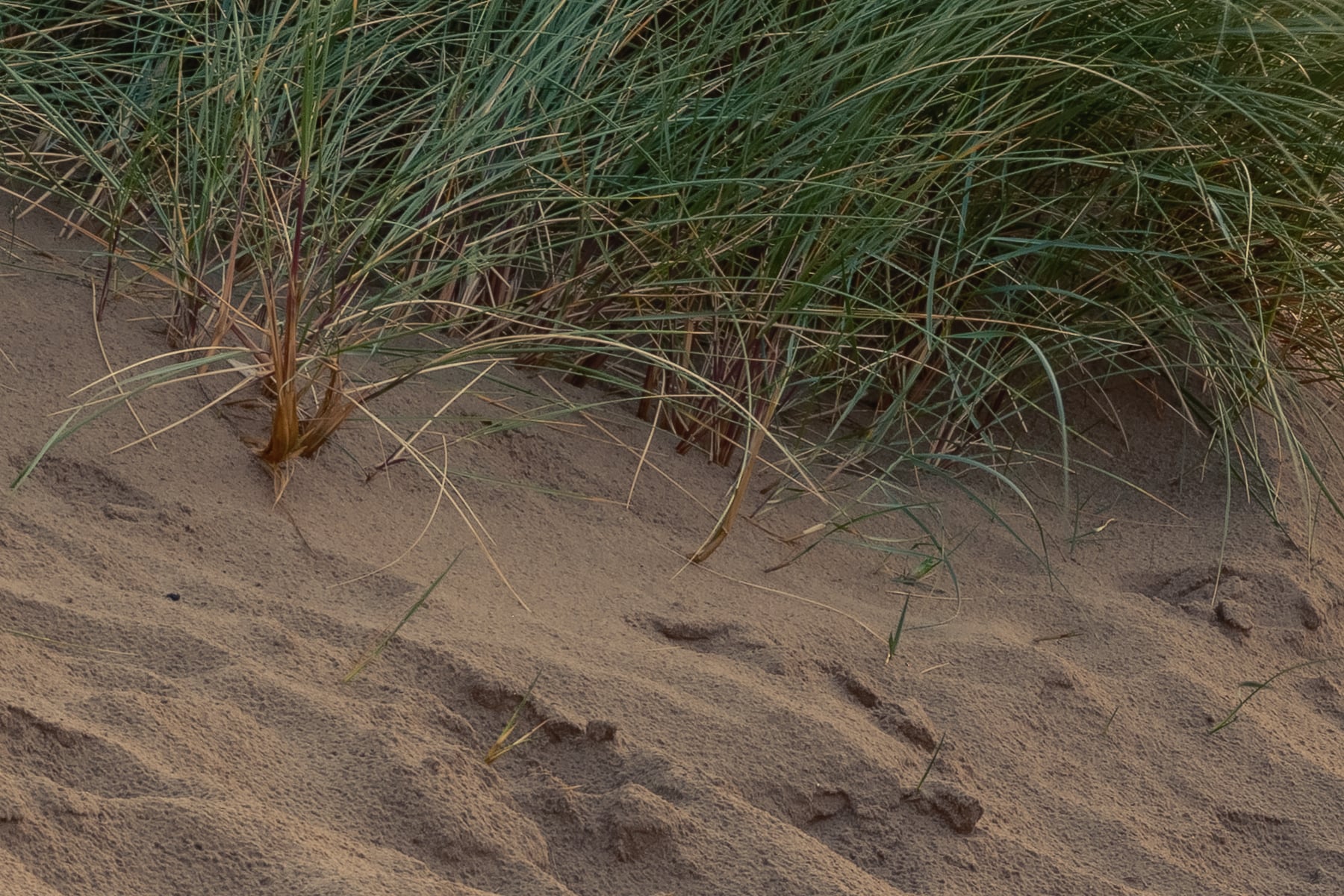 As the horizon stretches endlessly, the interplay of light and shadow across the dunes adds depth to the composition. The beach is undisturbed, evoking the raw beauty of nature in its purest form. The subtle movement of the grasses in the evening breeze and the soft ripples on the water suggest a gentle rhythm, complementing the overall serenity of the moment.