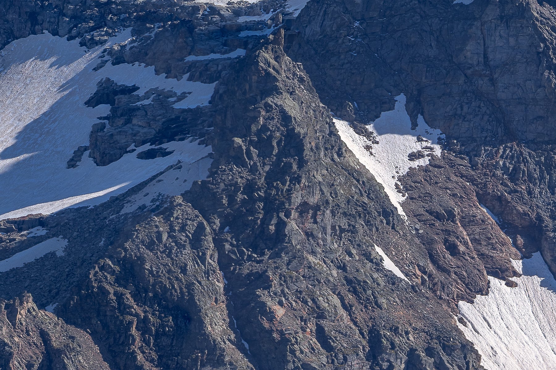 The observation point I chose to create my image allows you to see the entire wonderful lake of Rosset, located at 2701 meters above sea level, which has the particularity of possessing a small islet, located a very short distance from the shore, in the northern part, and connected by a rocky ford (in the photo you will see some hikers crossing it).