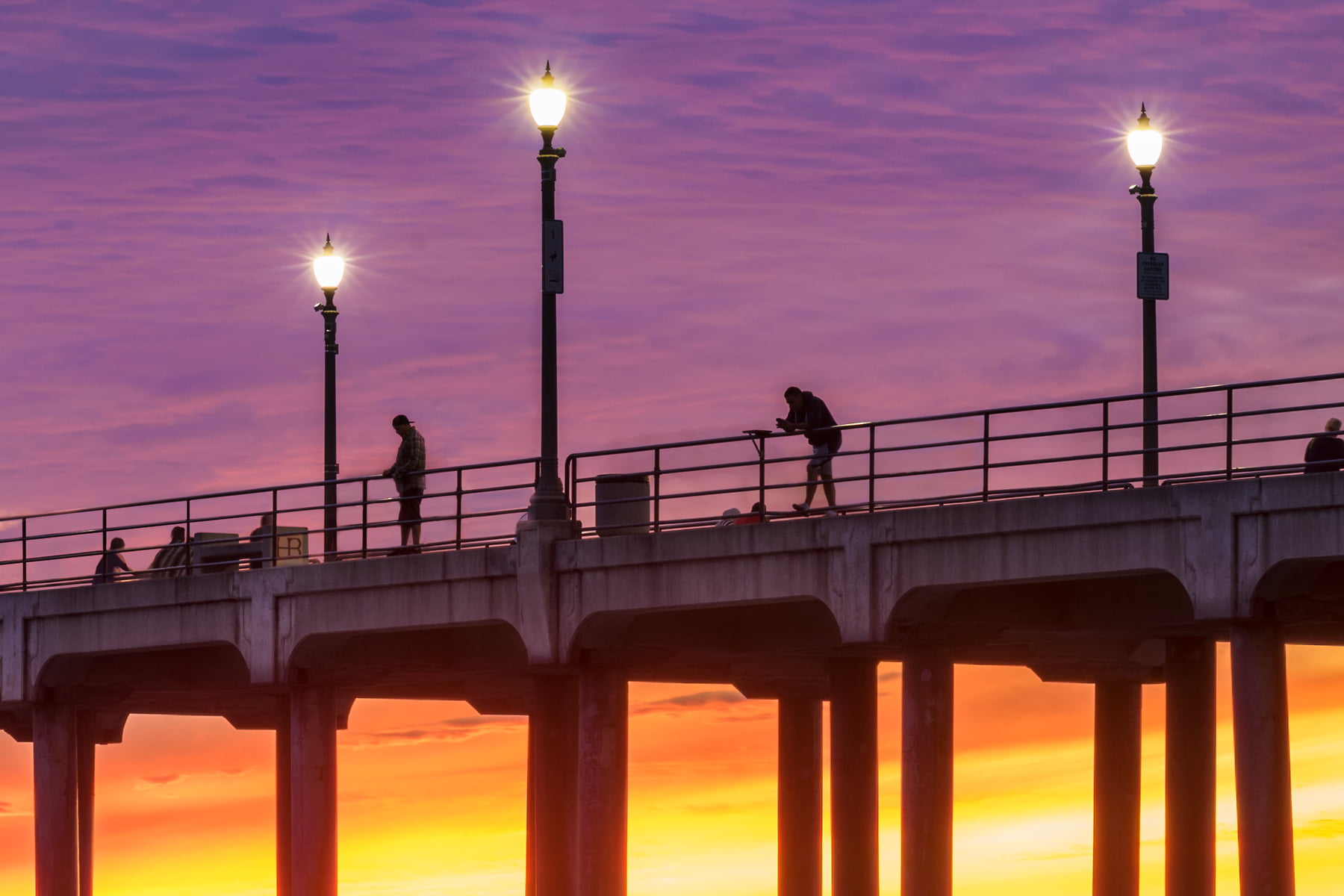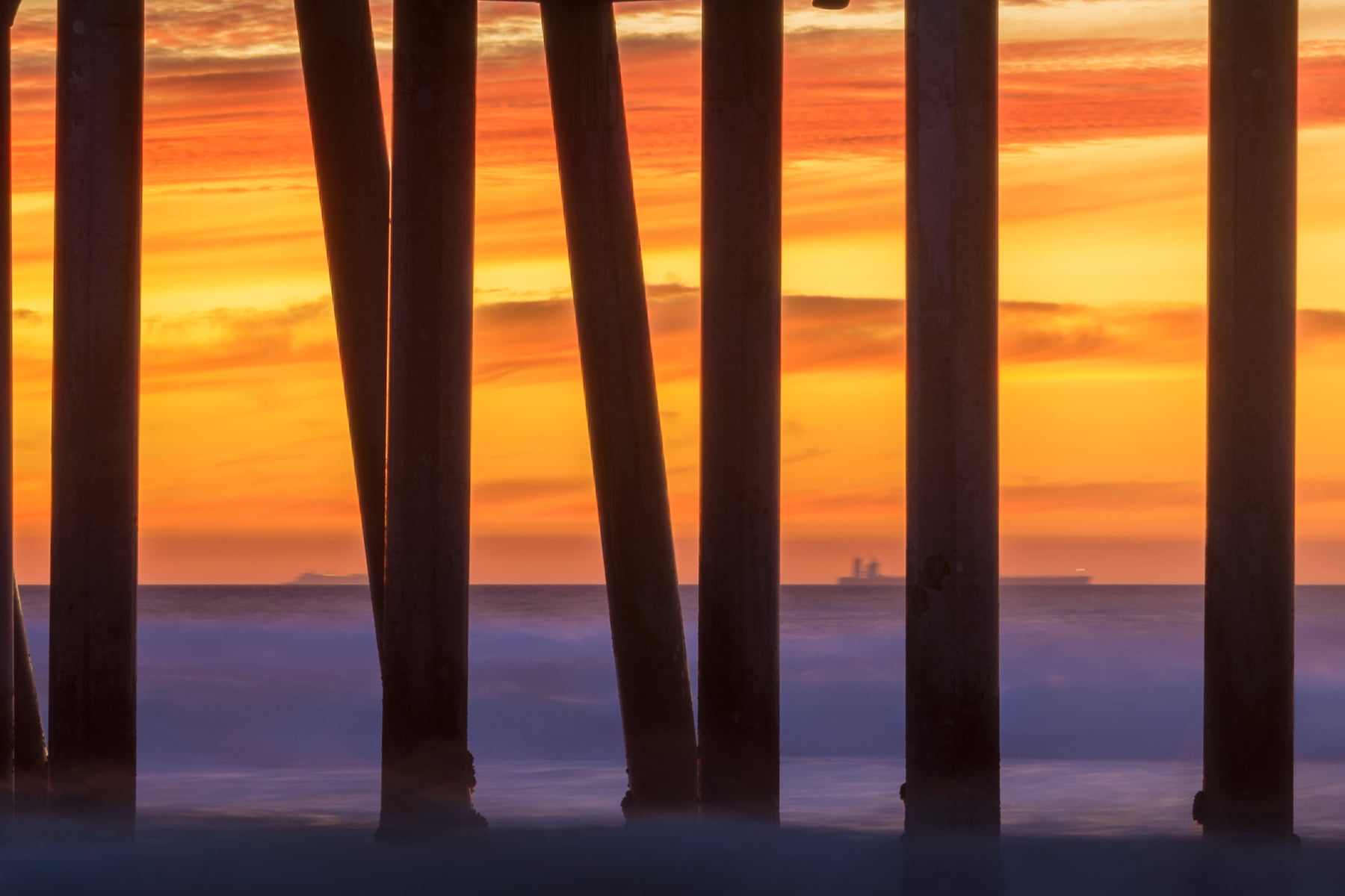 I have chased the sunset down to the ocean about ten miles from my home no less than 20 or 30 times, only to have “nothing happen.” This day was different. The sky and the clouds looked promising throughout the afternoon and it seemed worth the effort to make the longer drive to Huntington Beach to photograph perhaps our most iconic Southern California beach subject.