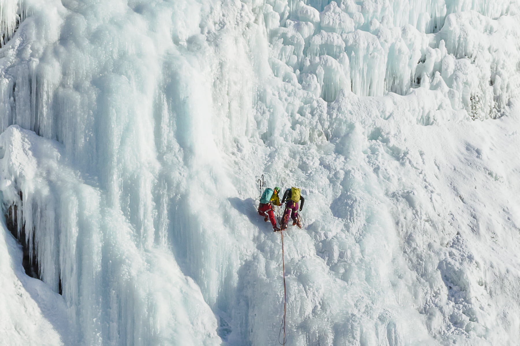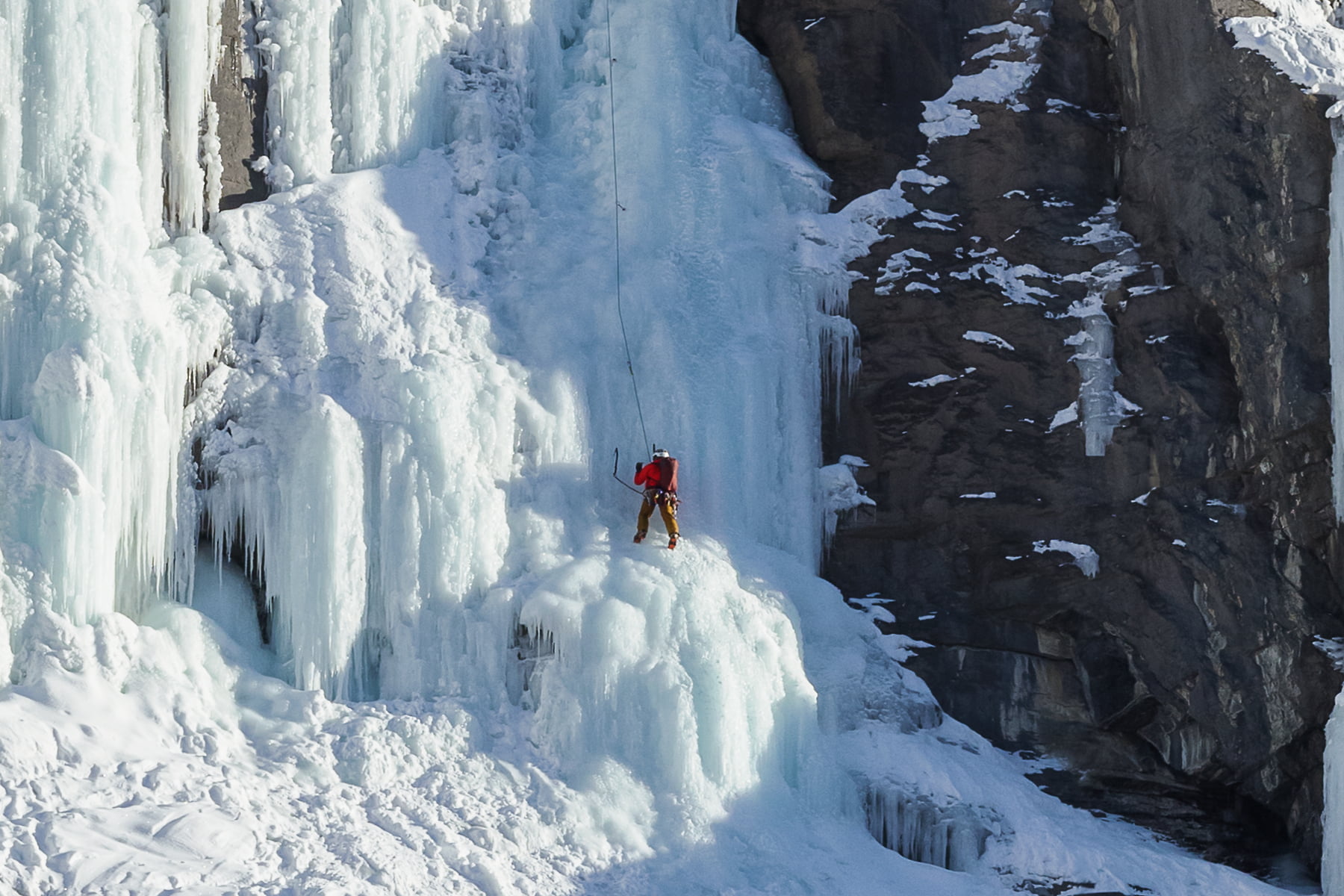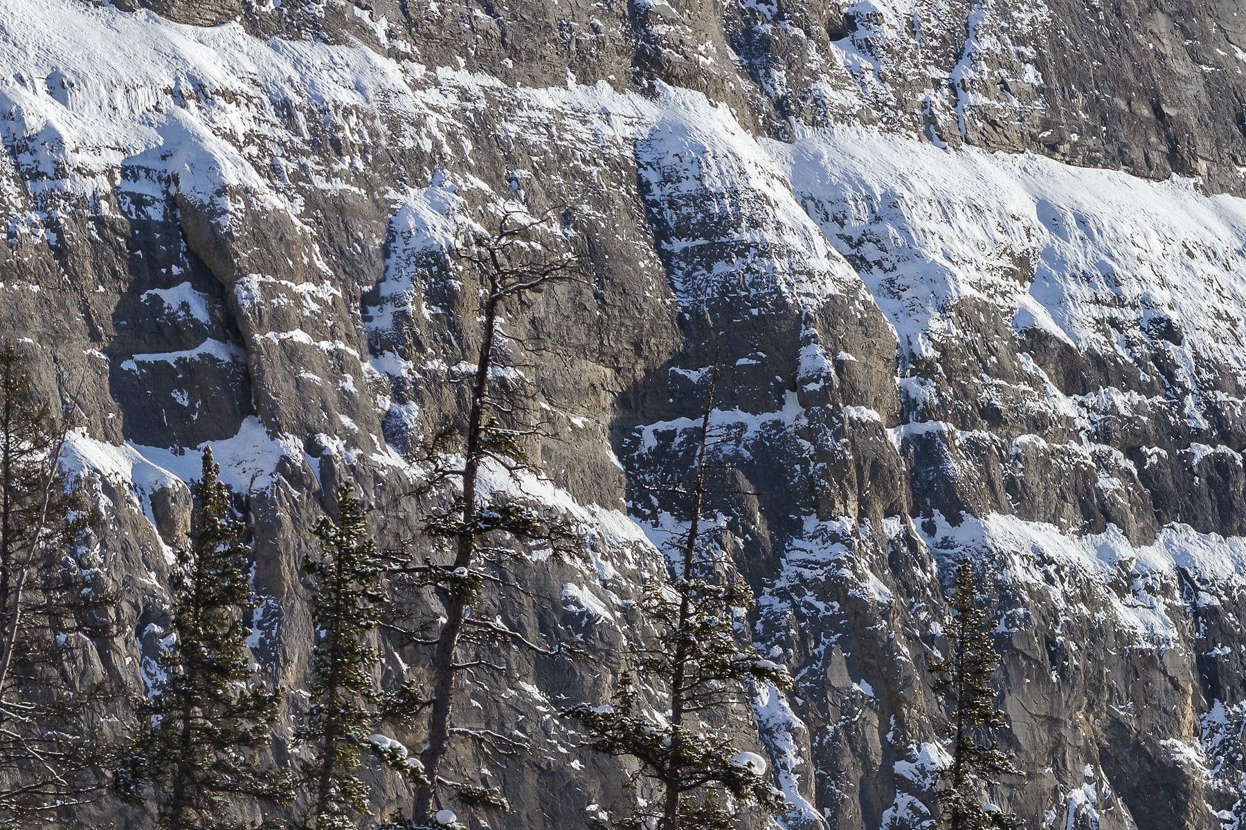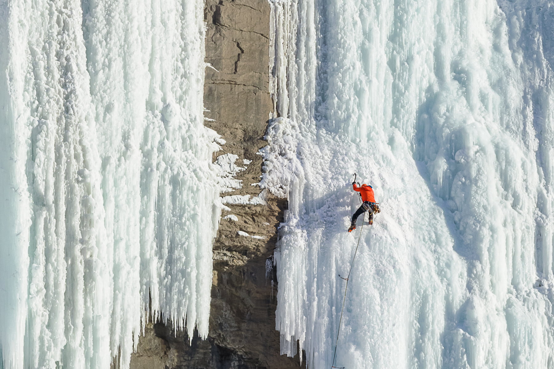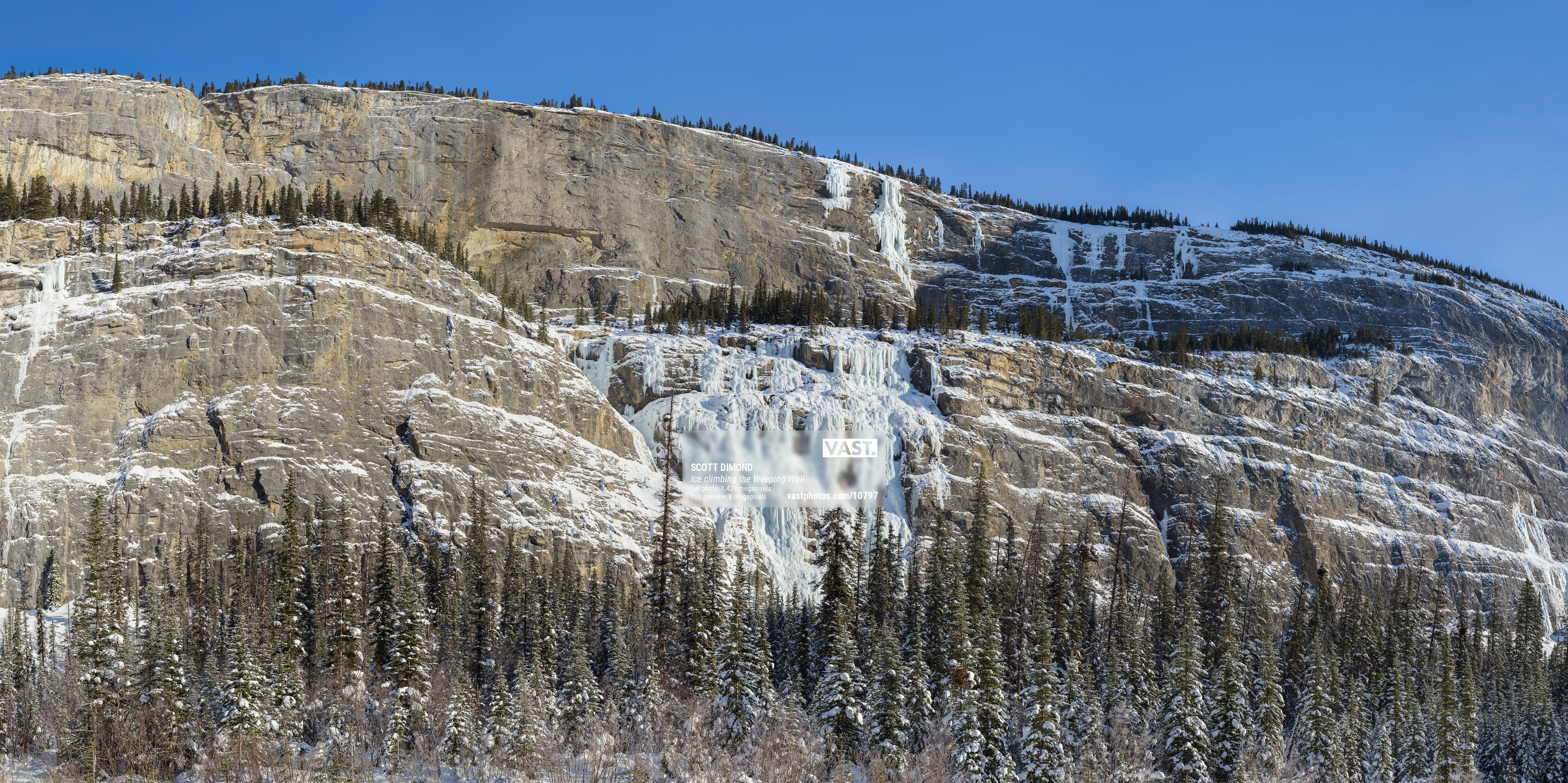 It was on this particularly gorgeous day in December 2020 that I set up roadside to create a VAST image of the Weeping Wall. Fortunately, there were already three separate groups of climbers on the ice face, and I was able to include them in the creation of this ultra-high-resolution image. The wall is so vast that at first glance, there is no sign of the climbers in the photo. It becomes a bit like a Where's Waldo challenge. But upon closer inspection, they are easier to spot in their brightly coloured climbing gear as they make their way to the top of the Weeping Wall.