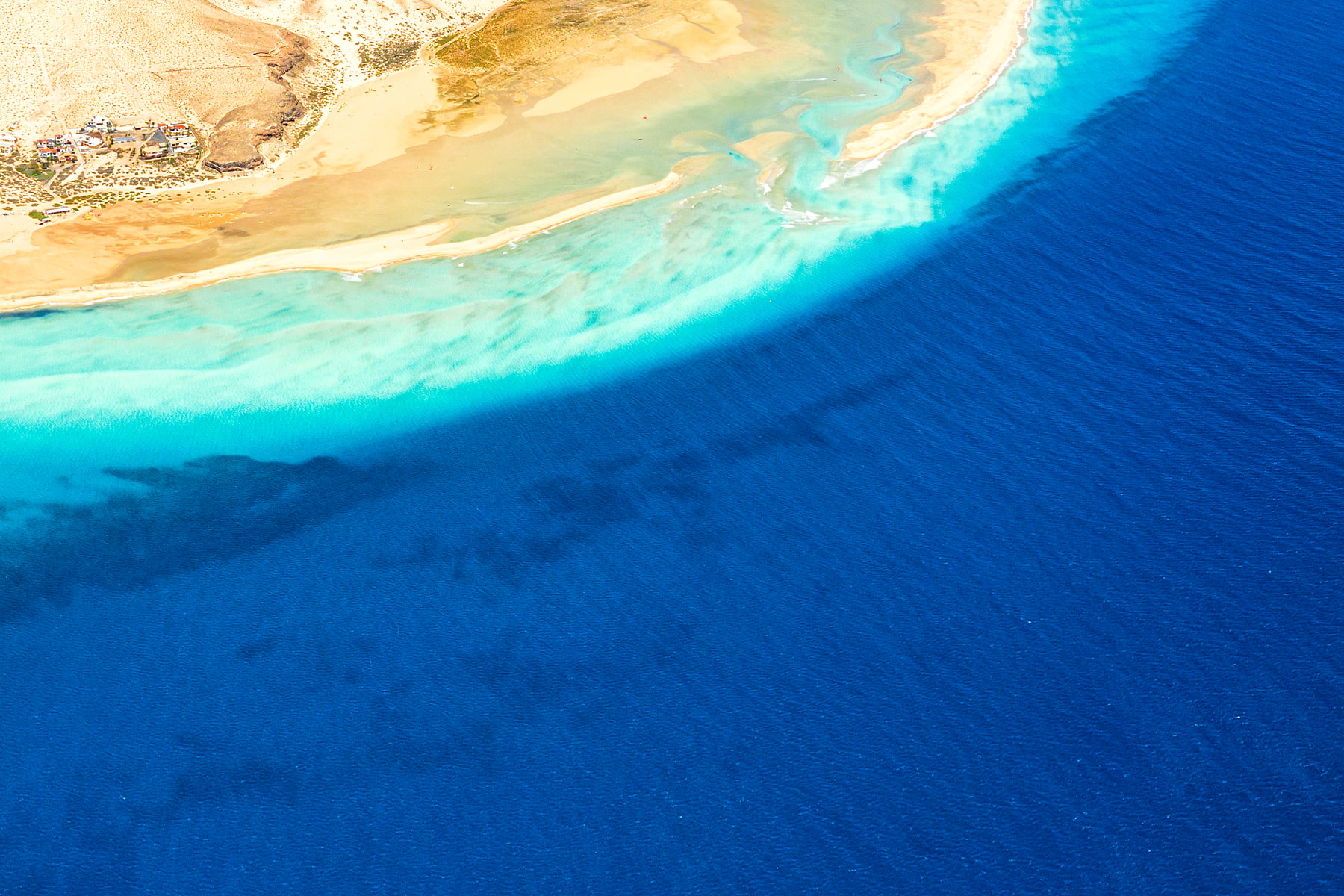 I think the panoramic aerial view, obtained with the drone, emphasizes the beautiful shades of the ocean water ranging from deep blue to exotic turquoise.