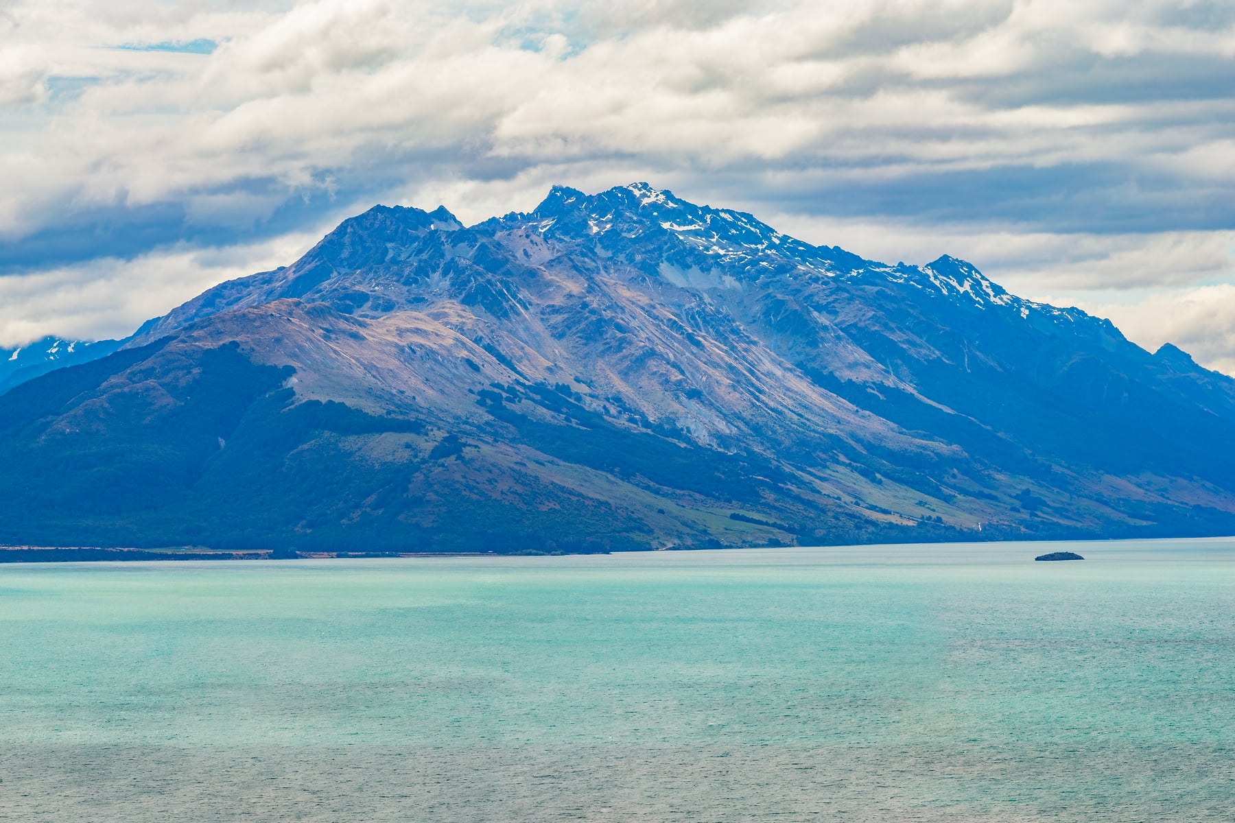 The lake area is surrounded by mountains, and is known for its scenic beauty. Lake Wakatipu is bordered by The Remarkables mountain range on the southeast. The tallest peak next to the lake is Mount Earnslaw, with an altitude of 2,819 meters. Queenstown can be found at the northern edge, whilst the Kingston, Glenorchy and Kinloch can also be found around the lake.