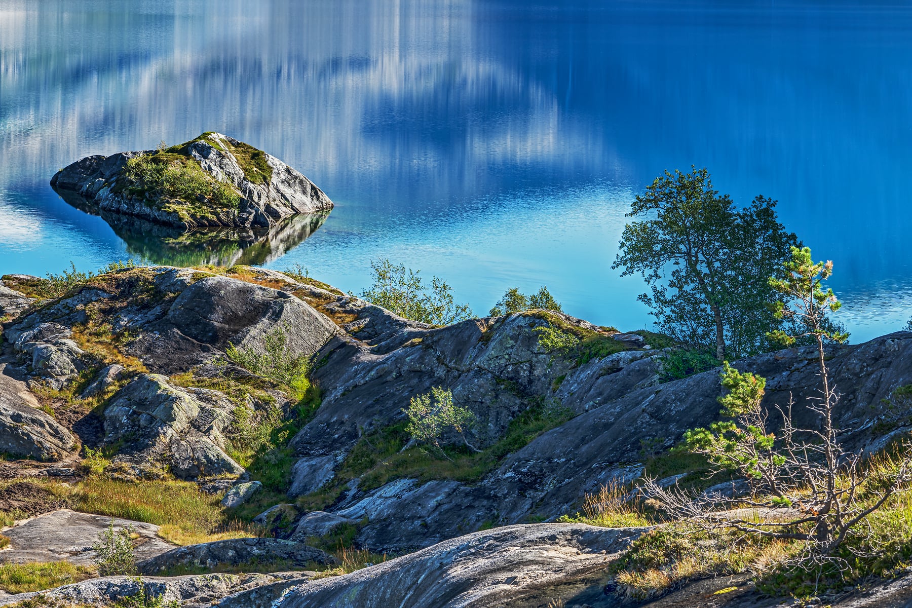 In the national park you have the feeling of feeling the breath of the last ice age. Only the slopes to the left and right of the LaksĂĄgas River, the banks of Storskogvatnet (lake) and Trolldalen (Troll Valley), which adjoins the lake to the northeast, are overgrown with pines and fell birches.