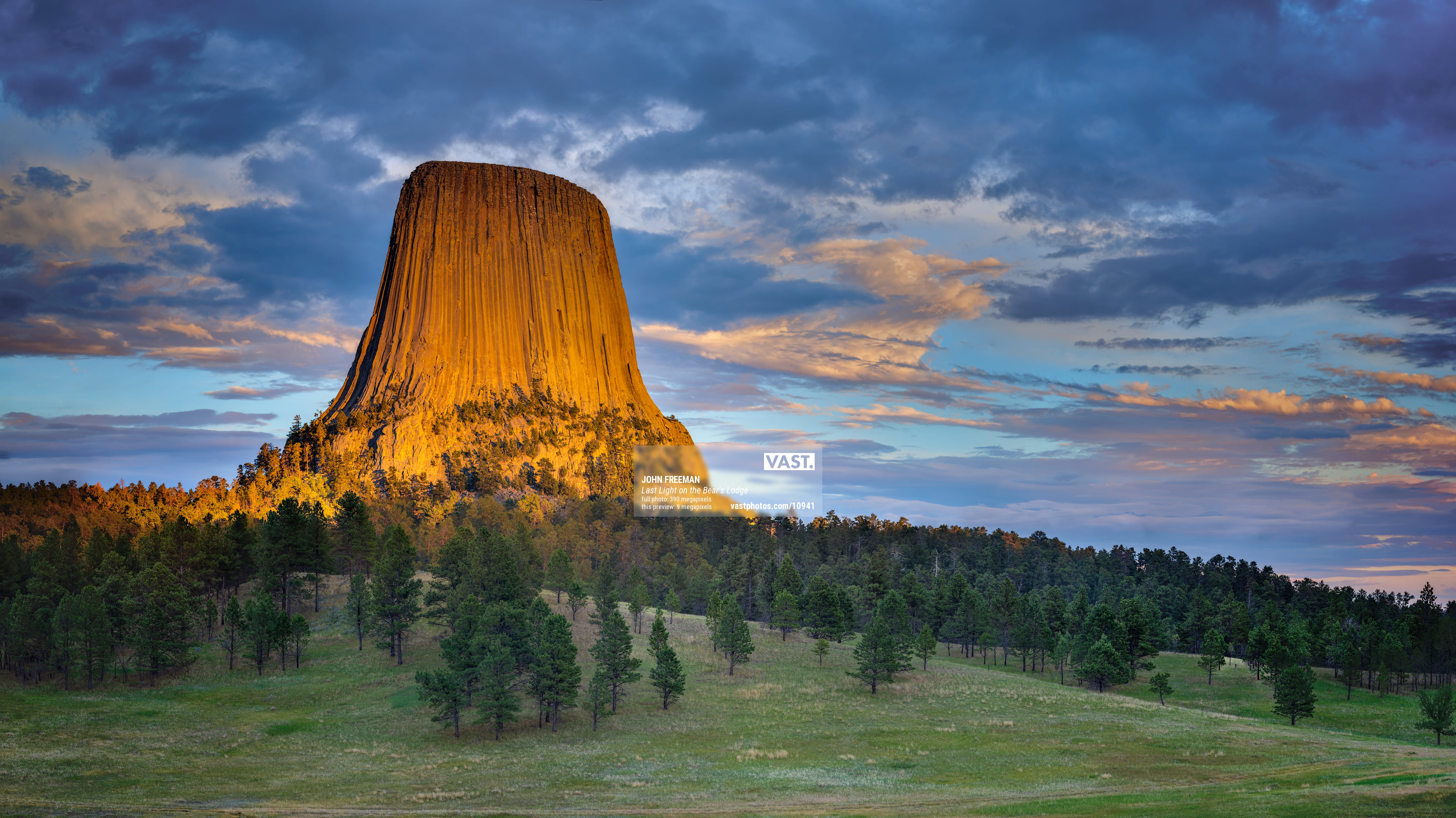 390 megapixels! A very high resolution, large-format VAST photo print of Devils Tower National Monument at sunset; landscape photograph created by John Freeman in Wyoming.