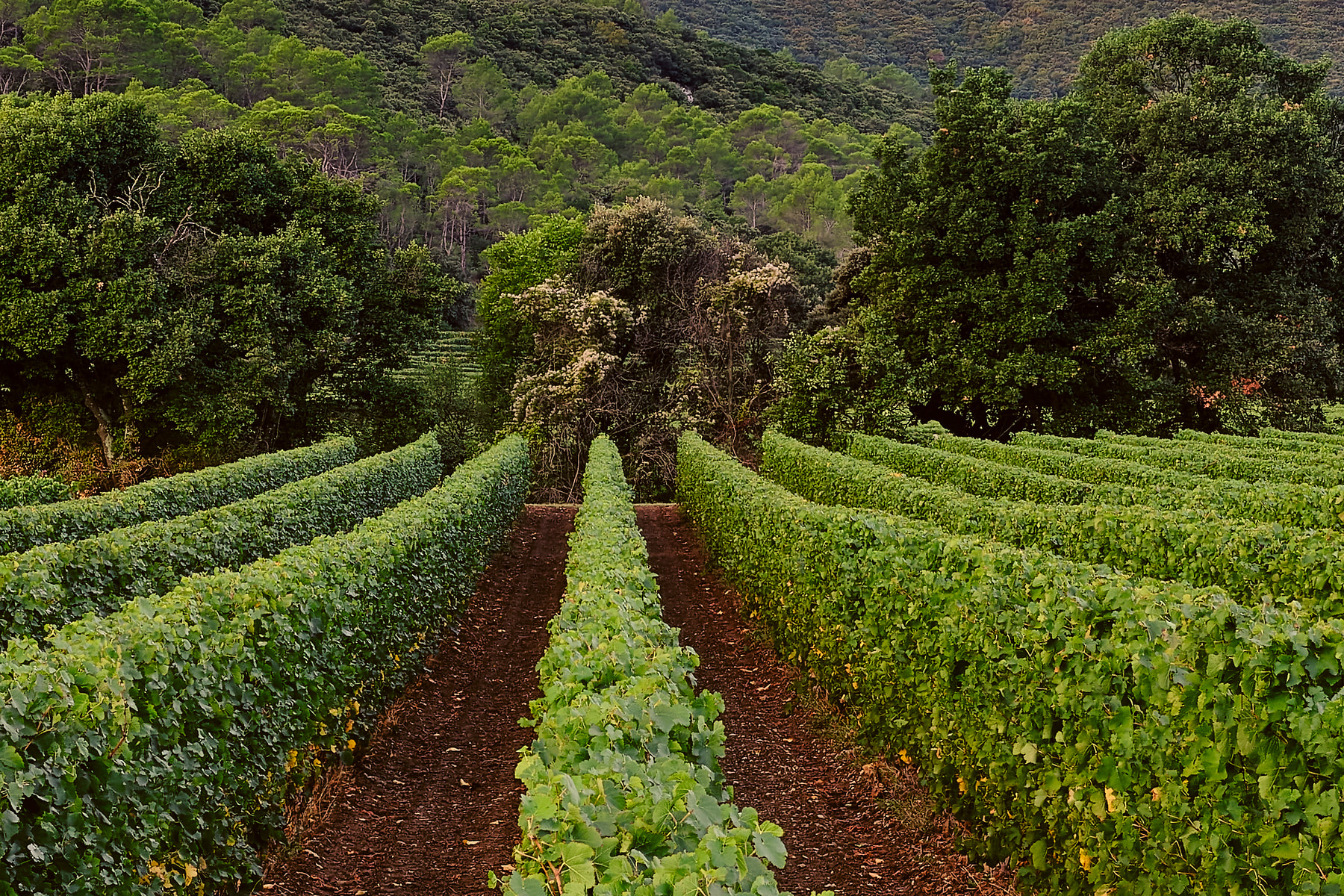 Languedoc is one of the most geologically diverse landscapes in France, and Pic Saint-Loup sits at the major transition zone of this geological diversity. The Pic’s climate is noticeably cooler than many other Languedoc wine growing regions because it is the point the coastal plain transitions to the higher, inland plateau. This combined with the local limestone soil allow grapes and, therefore, wines to retain higher levels of acidity and fruit freshness than those produced in the warmer areas of the Languedocian plains. There is also a range of different microclimates here, making it possible to produce different types of wines on the different facing slopes. The growers plant the sun-loving grapes for producing red wines on the south-facing slopes and the more temperate-loving varietals for producing white and rosé wines on the north-facing slopes. These advantages make Pic Saint-Loup a leading Languedoc wine region.