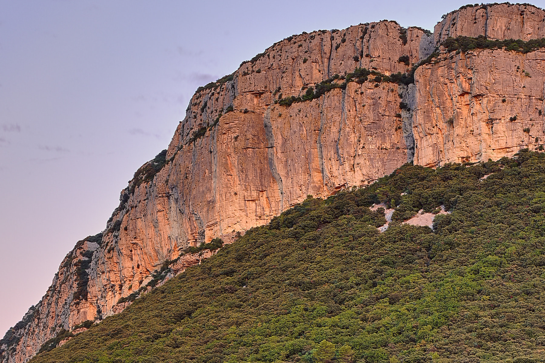 Between the Cévennes Mountains to the north and Montpellier to the south, Pic Saint-Loup (658 meters / 2,158 feet above sea level, left) and the neighboring Montagne de l’Hortus (right) rise majestically over the landscape in the Languedoc wine region of France. This beautiful, rugged landscape is quite dramatic with garrigue like scrubland dominated by these two distinctive peaks. Seeing this area in the changing light of dawn as the sun rises over the fruity vineyards leaves one yearning for sitting at a cafe in a nearby village sipping wine on a summer afternoon.