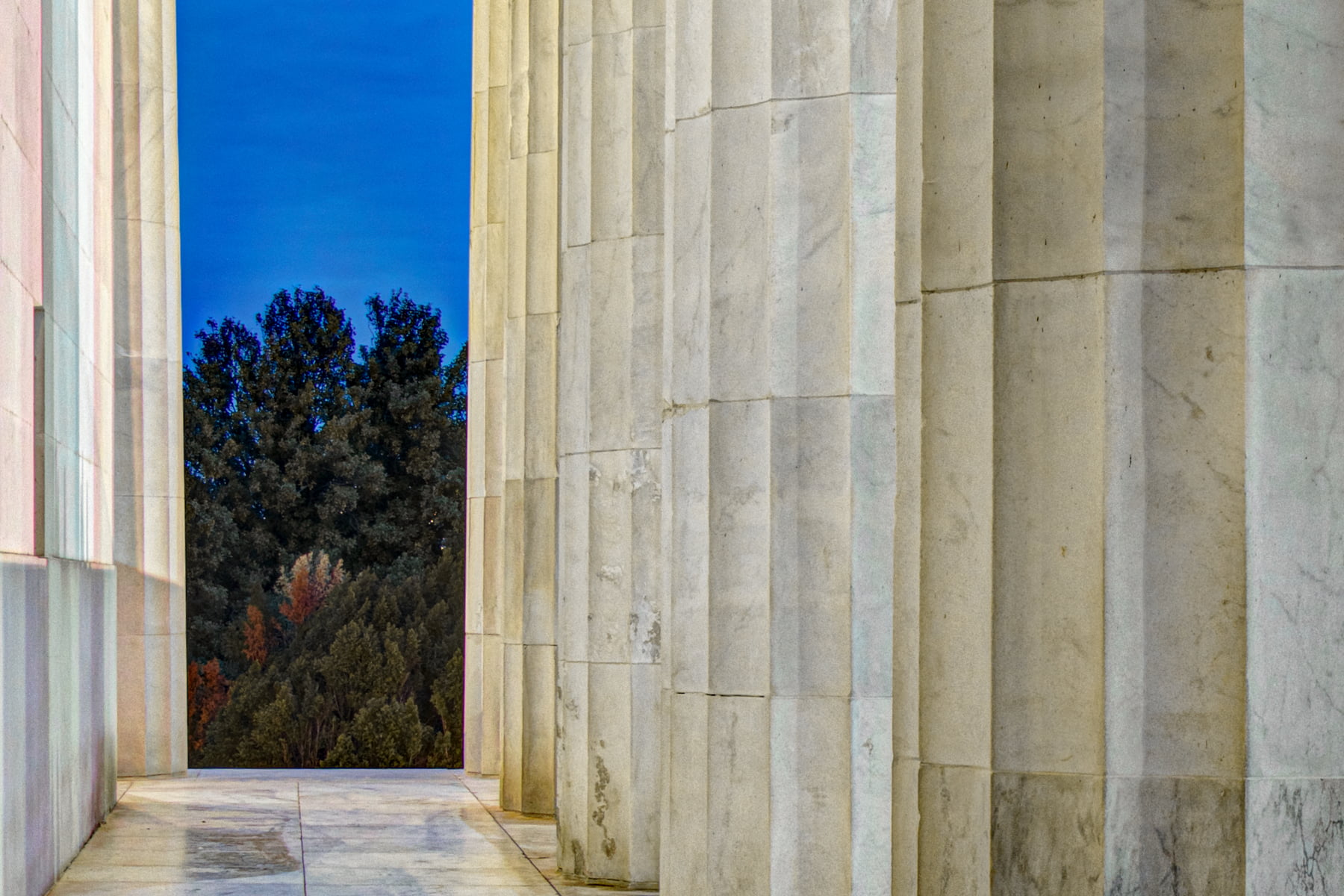 The full circle of this single row panorama makes for the initial feel that it was shot with a wide-angle lens but leaves the viewer, many of whom have visited the Lincoln Memorial, wondering where or how exactly this image was taken. The moment of realization that the marble statue of Lincoln and the Reflecting Pool with the Washington Monument are actually opposite each other fascinates me to this day. I enjoy how this method makes for a surreal feel while still being a fairly straightforward image.