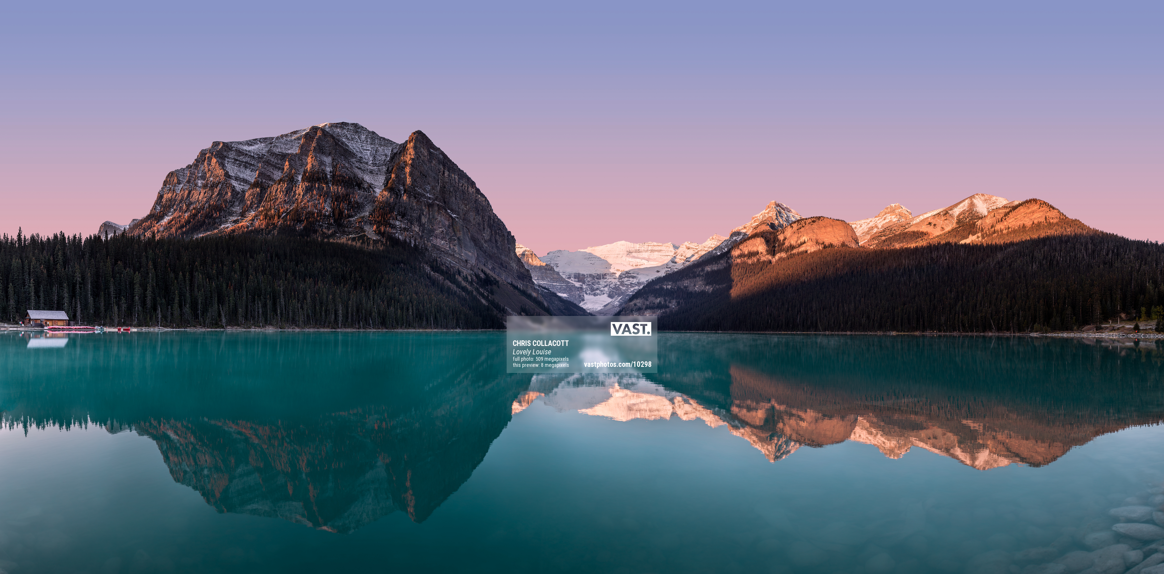 This is a unique high resolution panoramic view of one of the most photographed places in Canada - Lake Louise in Banff National Park.