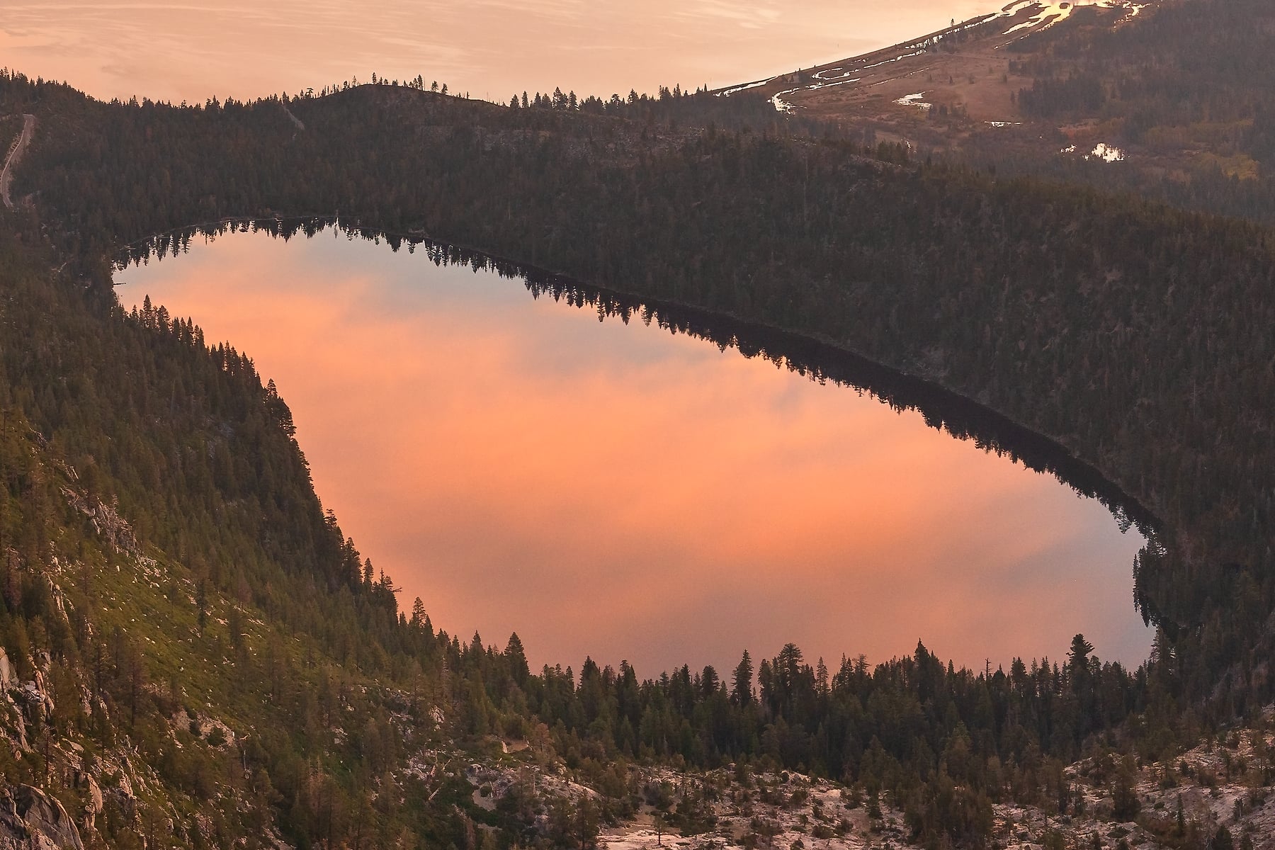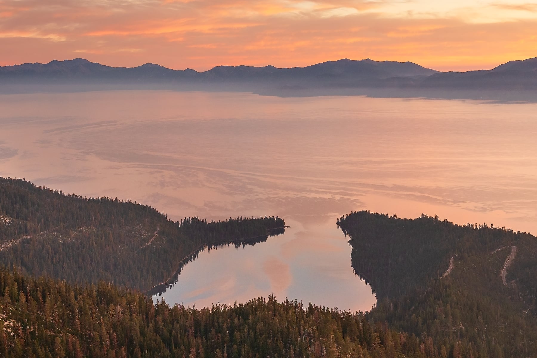 Shortly after, my sunrise model ran, and confirmed that there would likely be a nice sunrise the following morning. I said, nope, we ain't goin' home tonight -- this is my chance for redemption. So we called our dogsitter and said we'll need one more night, found a campground near the lake, pitched our tent, woke up at 5am, and I hiked up 2000' to this summit to catch this lovely sunrise over several of the lakes and bays of the southern Tahoe basin. And THEN, only then, could we finish the drive home!