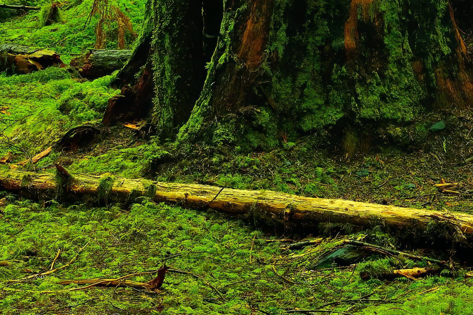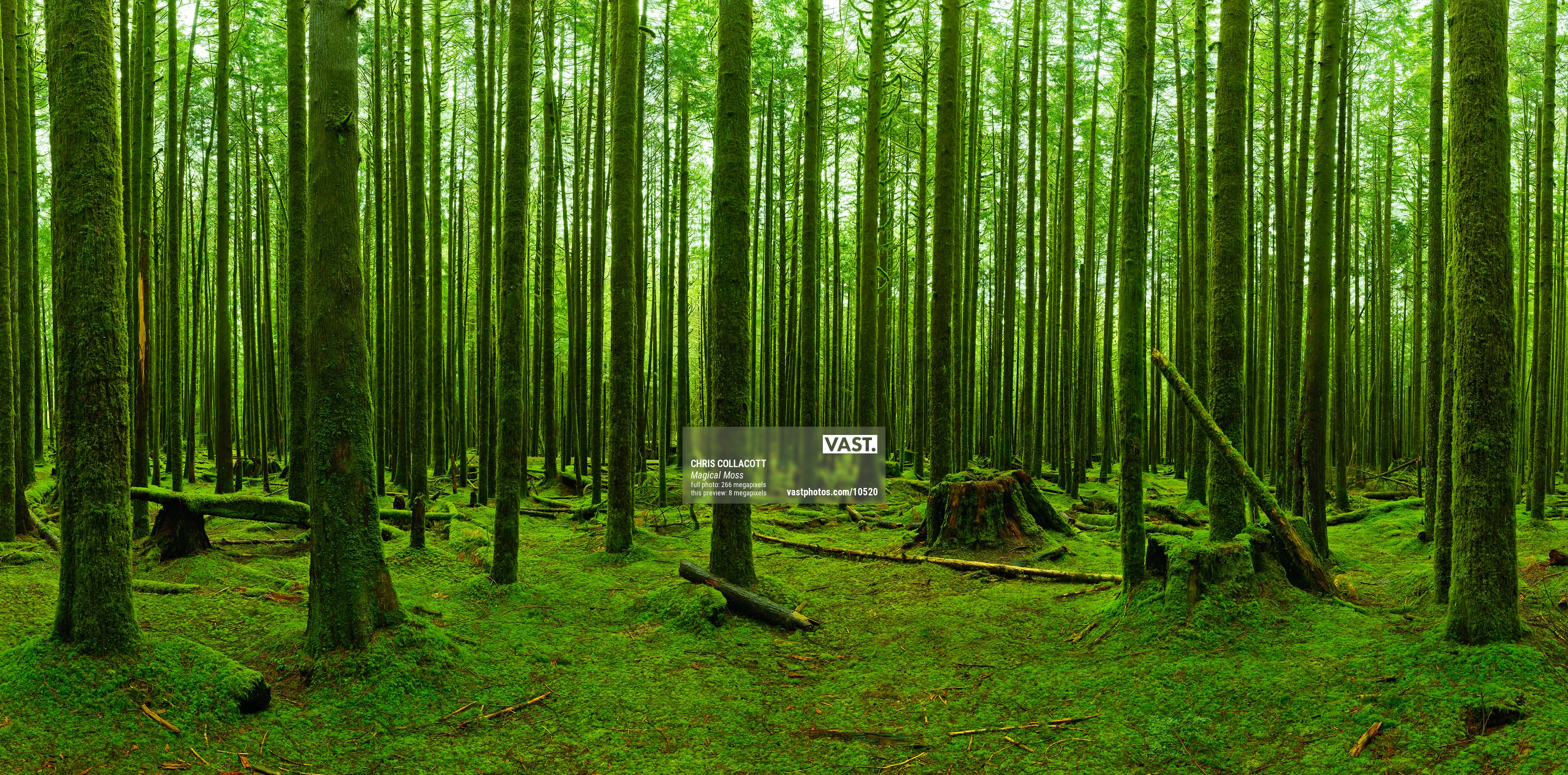 Most forests are covered with debris of fallen trees and underbrush but I wanted to find a location that was unique and different. So, I discovered this special place which was mostly clear of debris and covered with a fresh coating of moss. This allowed for a VAST photo that had a greater amount of visual simplicity and calm.