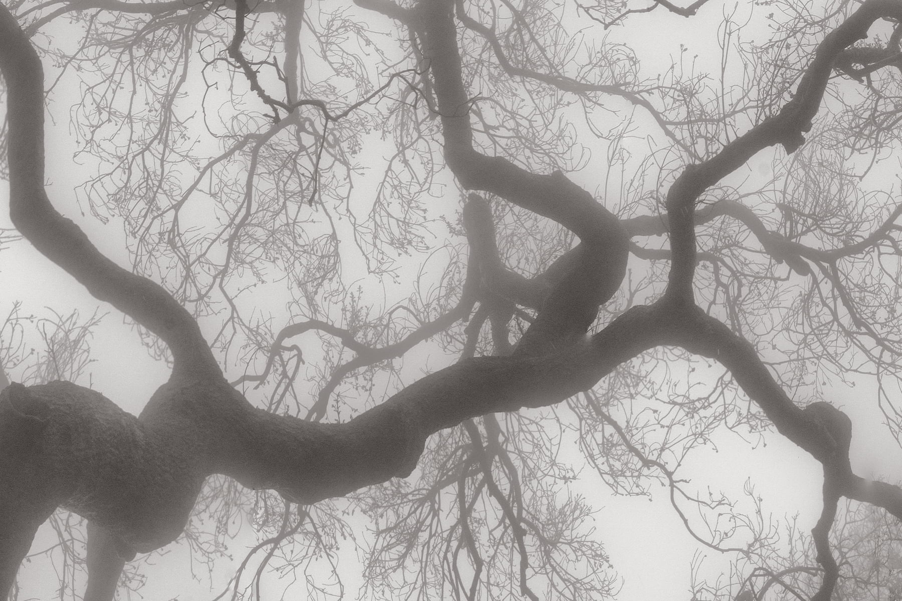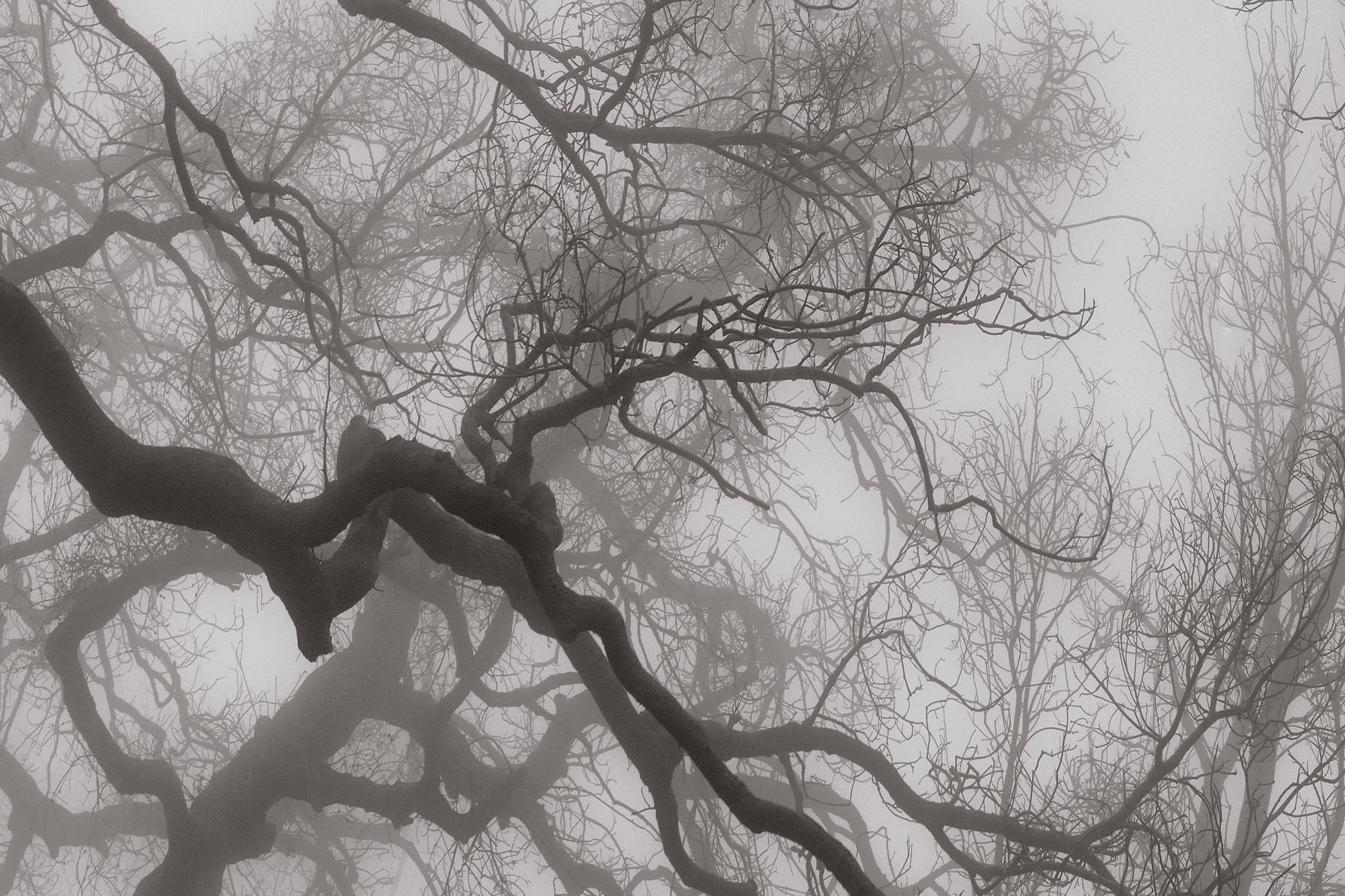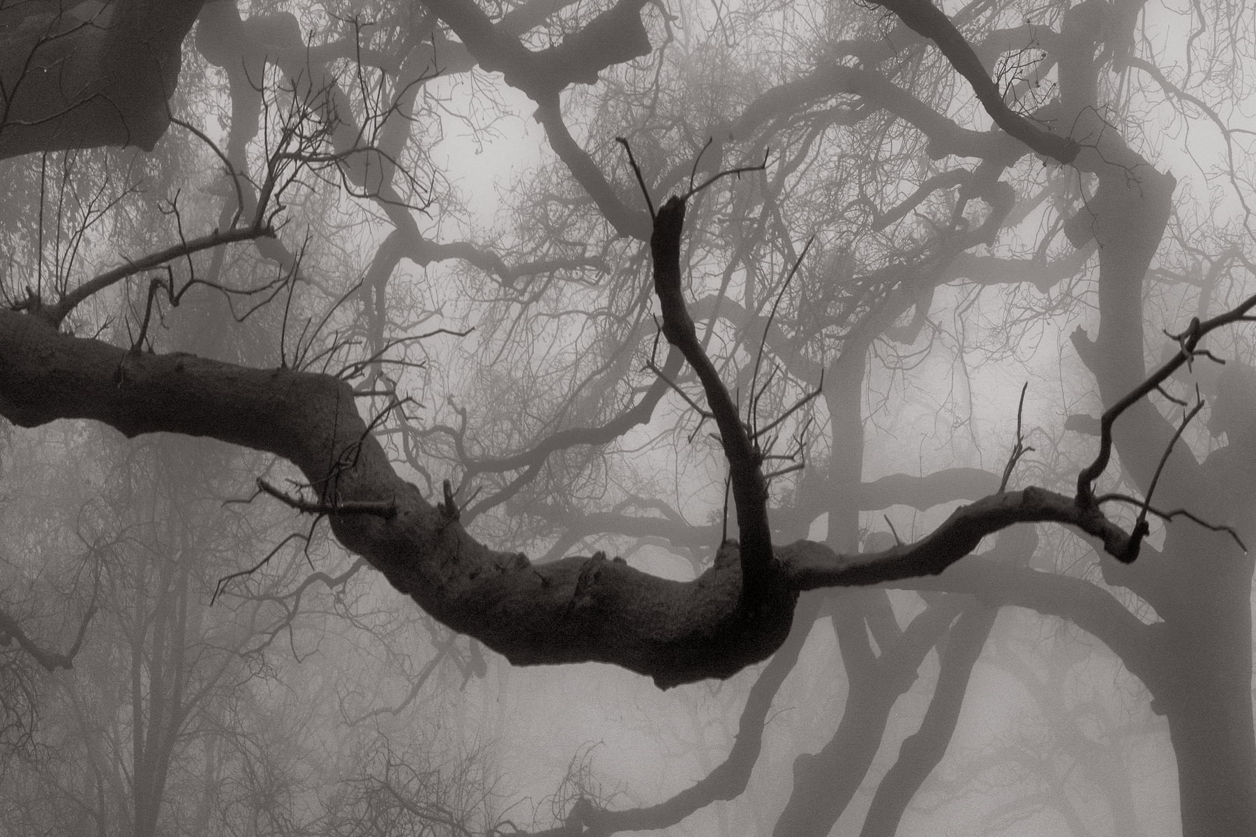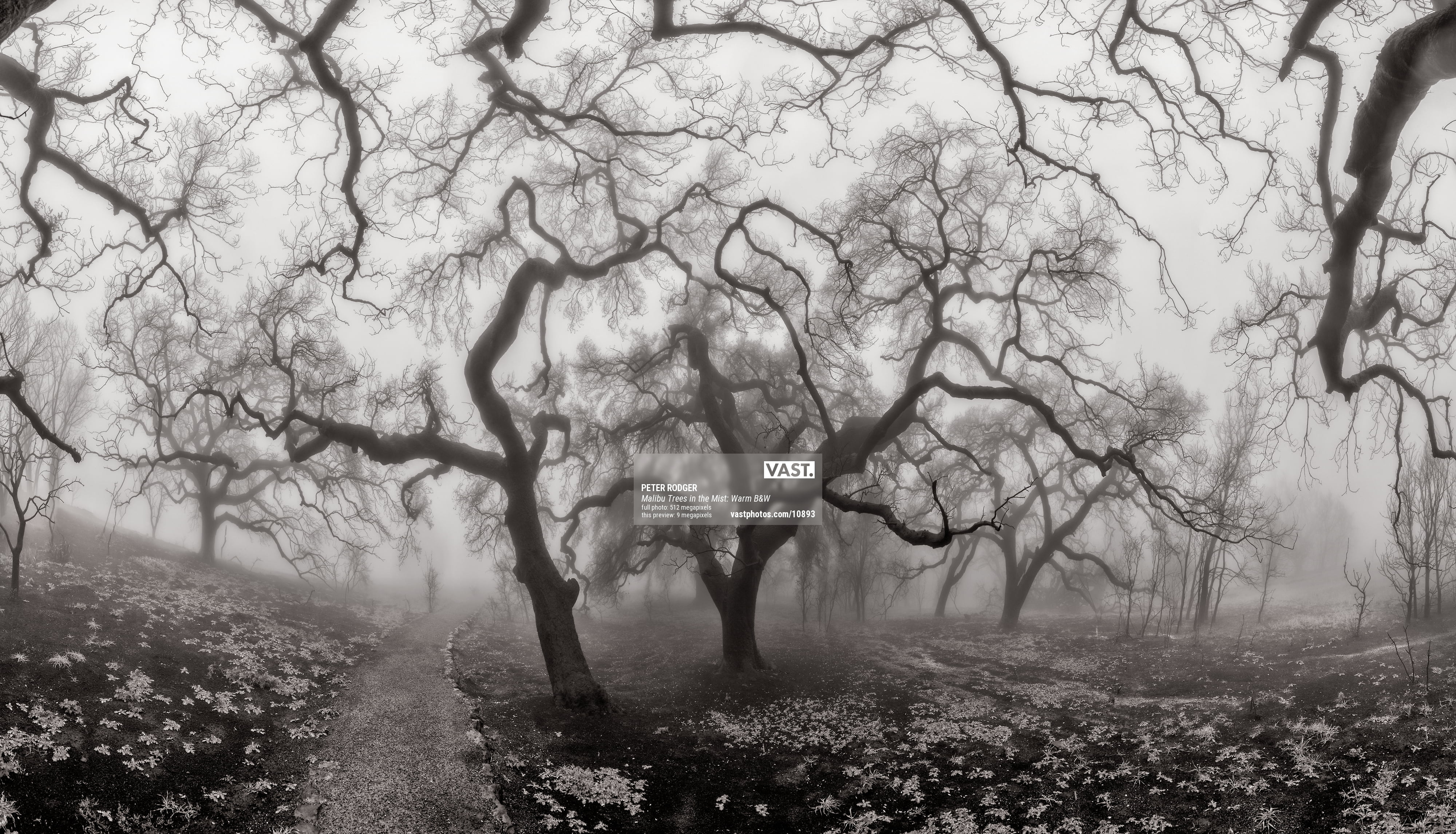 Only after the horrible events of the Malibu fires was I to witness the rebirth of the wild areas above the ocean in Malibu. Nature is strong. Nature prevails and this image is a homage to the beauty and life that lives within. Amongst the charred black trunks of burnt-out trees, little sprigs of green were starting to appear. The fog rolled in and made ominous, yet beautiful, shapes and cut distance - creating a world where only nature understands.