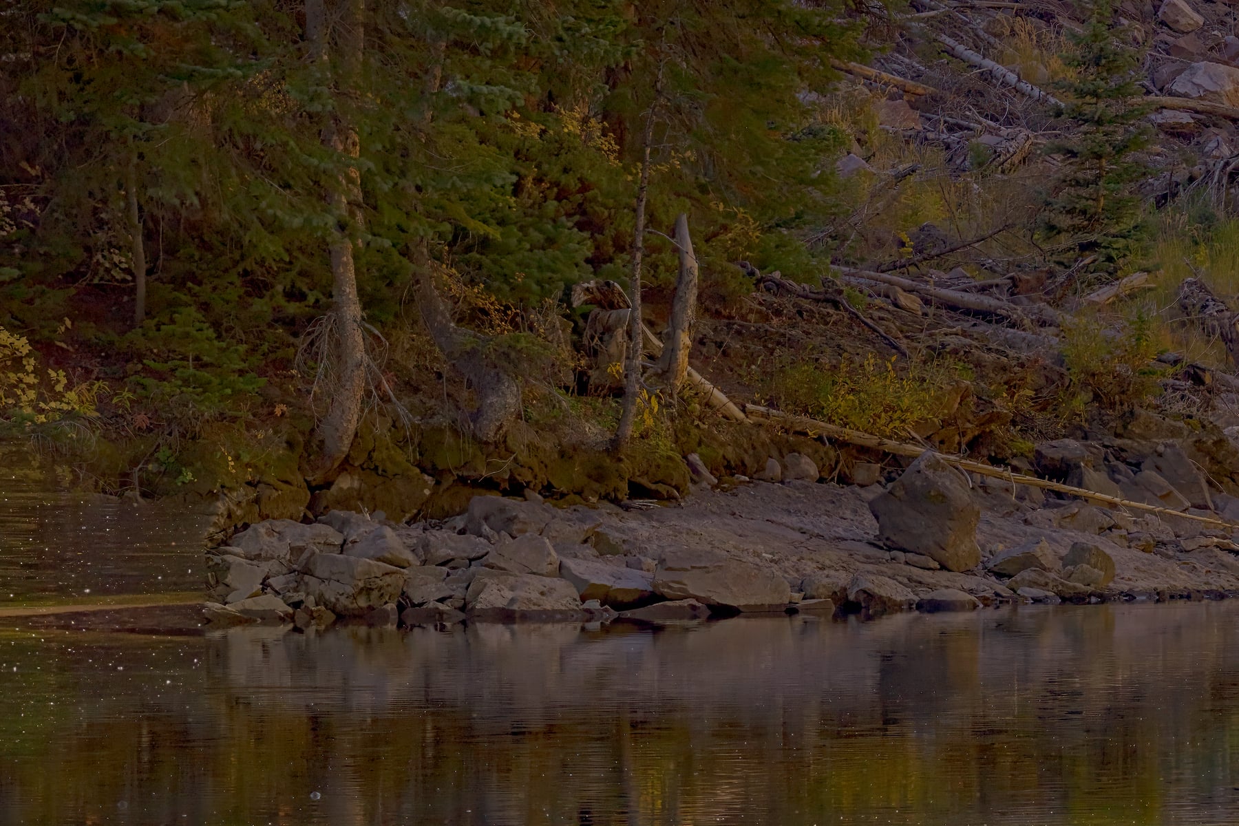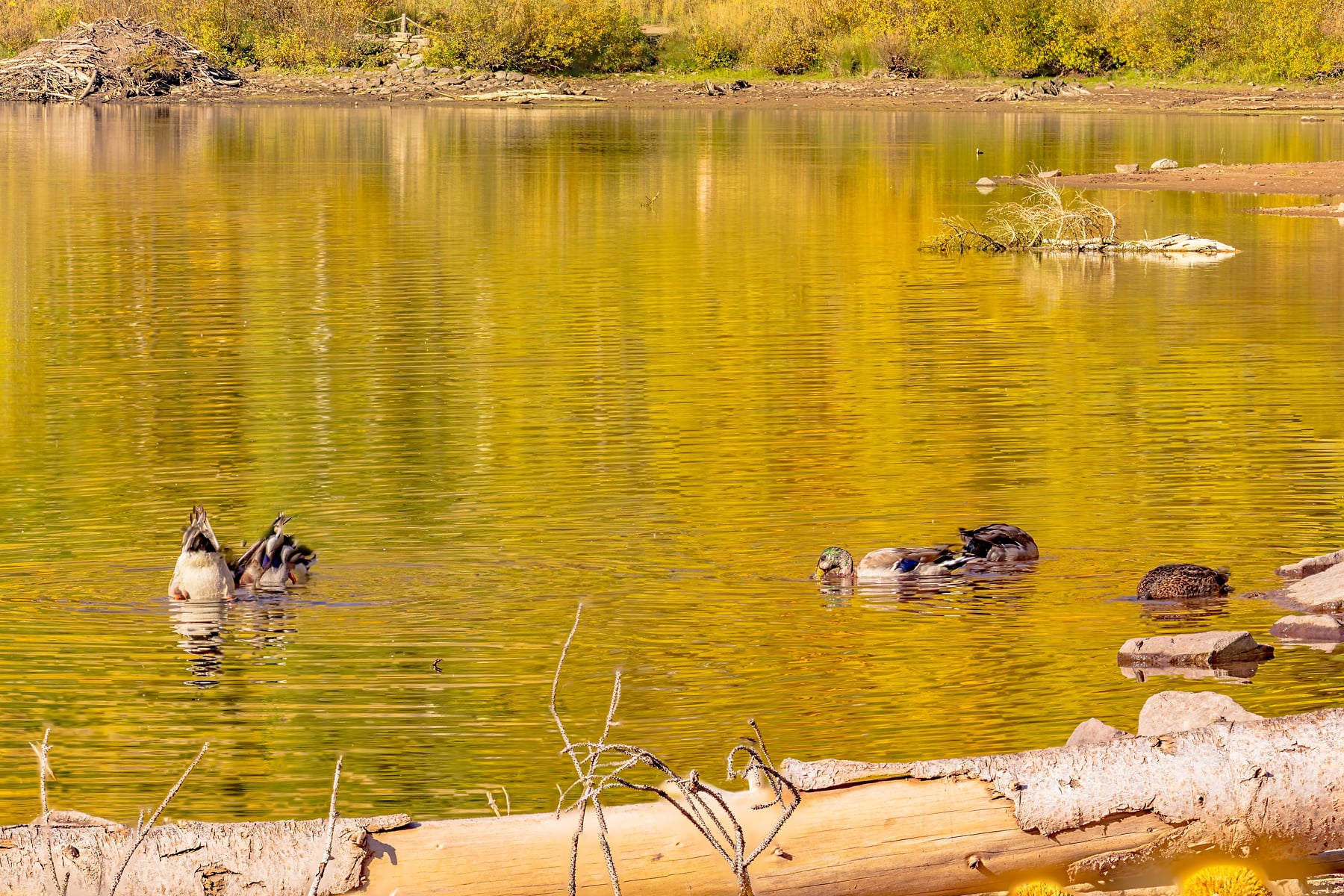 On this particular morning, as I was walking along the north shore of Maroon Lake I couldn't help but notice this patch of white daisies still blooming even though it was late September. I watched as several people took cell phone shots of the daisies with the Bells in background, a beautiful shot for sure. As I viewed the scene I realized that there was hardly a breath of wind so the flowers were nearly motionless, an essential requirement for doing a focus bracketed set of images. With such a beautiful scene I contemplated if I could pull off shooting a gigapixel wall mural of this beauty God had provided us on this glorious morning. Always up for a challenge to capture God's creation in a gigapixel wall mural, I decided I would position my tripod about 3ft. above the ground, some 6ft. from the daisies (which is as close as my 300mm lens will focus) and attempt to included them in a shot with them as the prominent foreground subject. Plus as a bonus, the lake was nearly a mirrored surface reflecting the yellow Aspens on the foot hills of the Bells. A couple pairs of ducks quietly fed along the shoreline as I was shooting.