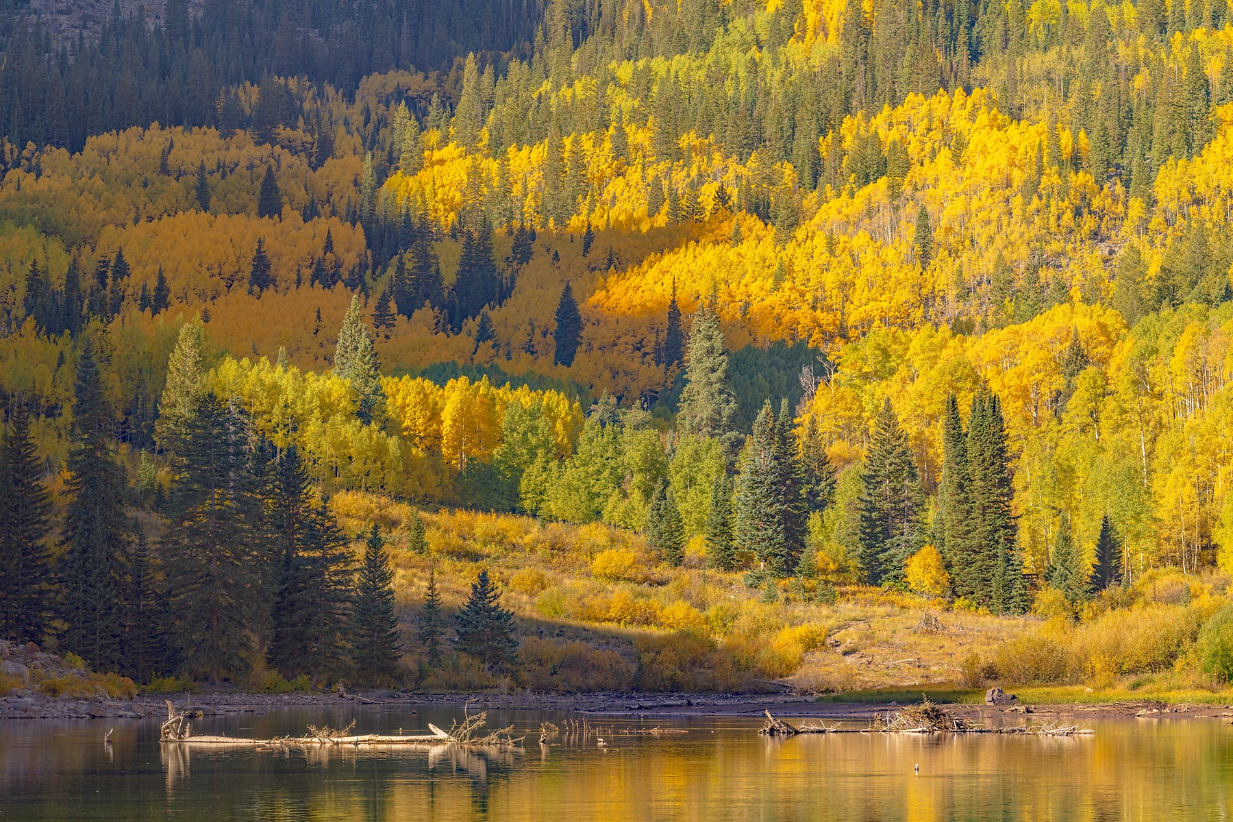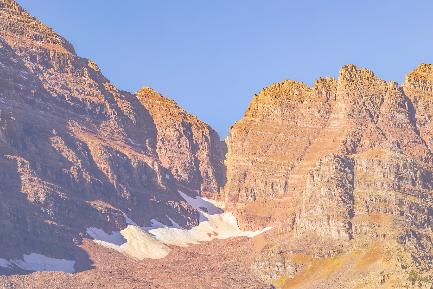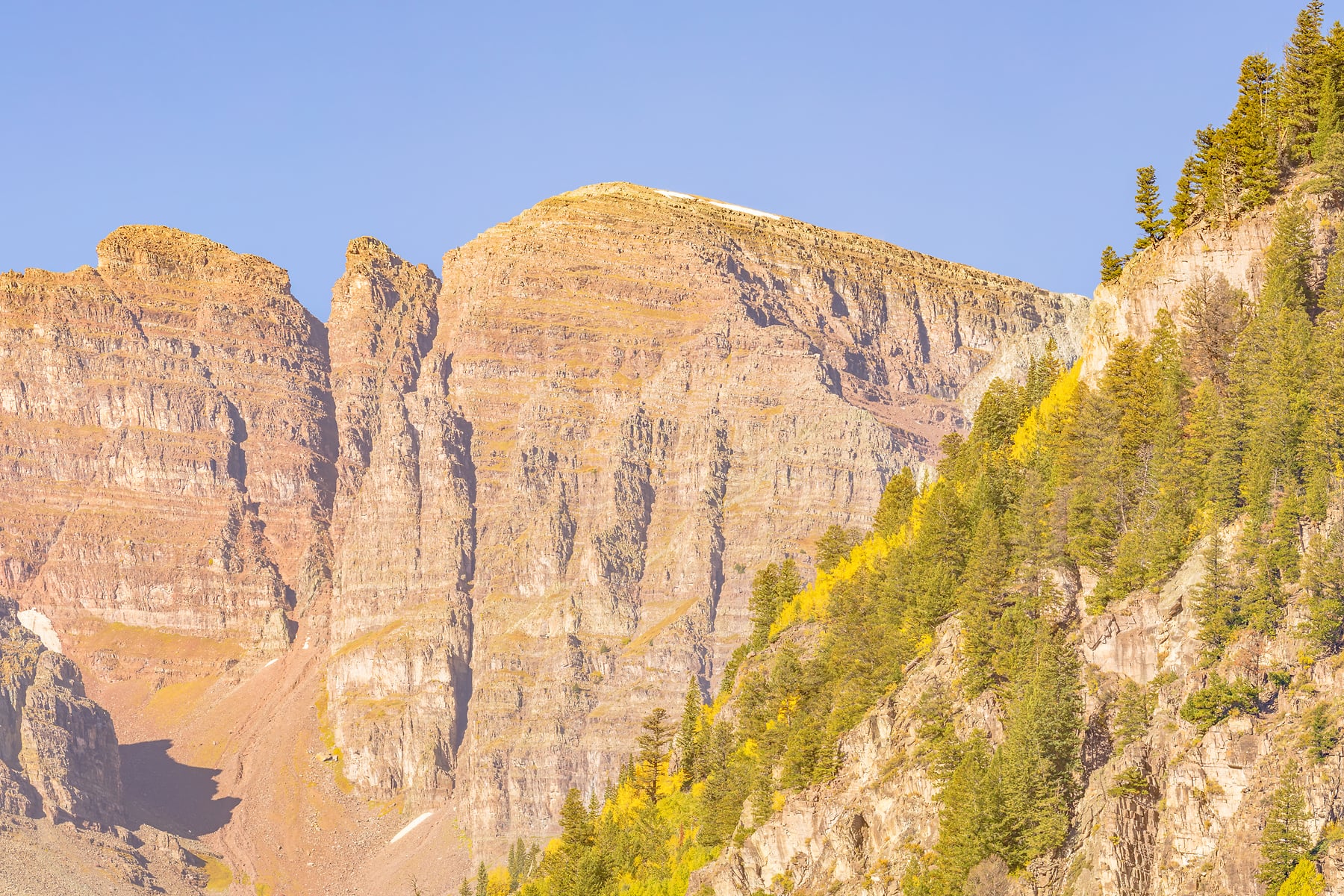 Without a doubt, the Maroon Bells are two of the most photographed mountains in the whole of the Colorado Rockies. Rising more than 14,000 feet above sea level just south of Aspen, the twin peaks are striped with snow all summer long. Aspen trees drape the hillsides, while Maroon Lake provides a handy mirror that grounds the whole scene in a postcard-perfect reflection.