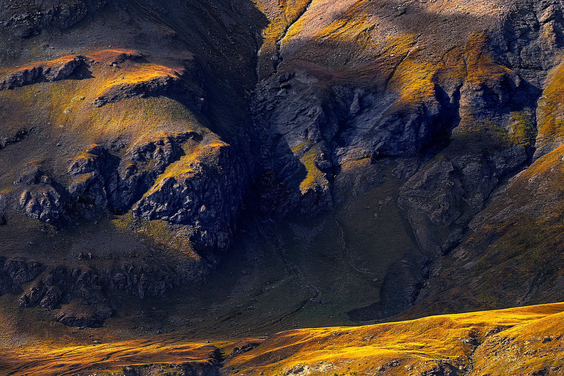 I often go to this area to photograph, because the light, especially in the afternoon, comes cut from the left side and creates spectacular plays of light that highlight the rock formations of the massif and all the shapes that have been created by erosion on the enormous slopes.