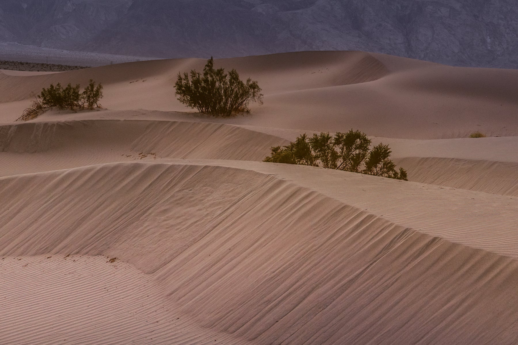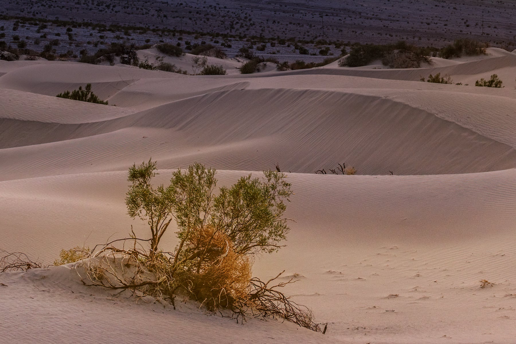 The Mesquite Flat Sand Dunes are a mesmerizing part of Death Valley National Park, known for their rippling patterns, sparse vegetation, and serene beauty. To capture this image, I ventured far into the dunes, seeking untouched sand and an unobstructed view of the surrounding landscape. As the sun slipped below the Panamint Mountains, the sky came alive in a stunning display of reflected light.