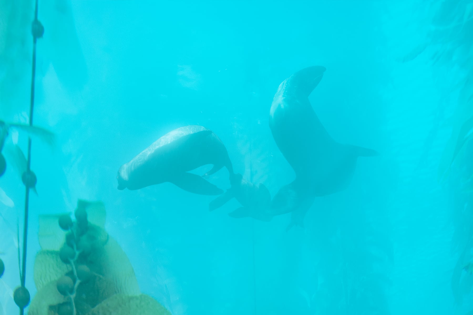Giant Kelp (Macrocystis pyrifera) is one of the fastest growing plants on the planet. Growing up to a foot a day, the kelp plants anchor themselves to rocks on the ocean bottom and grow straight up to the surface, 50-100 feet tall. As it grows even taller, the tops of the plants can float on the surface and spread out, adding many more feet in total length.
