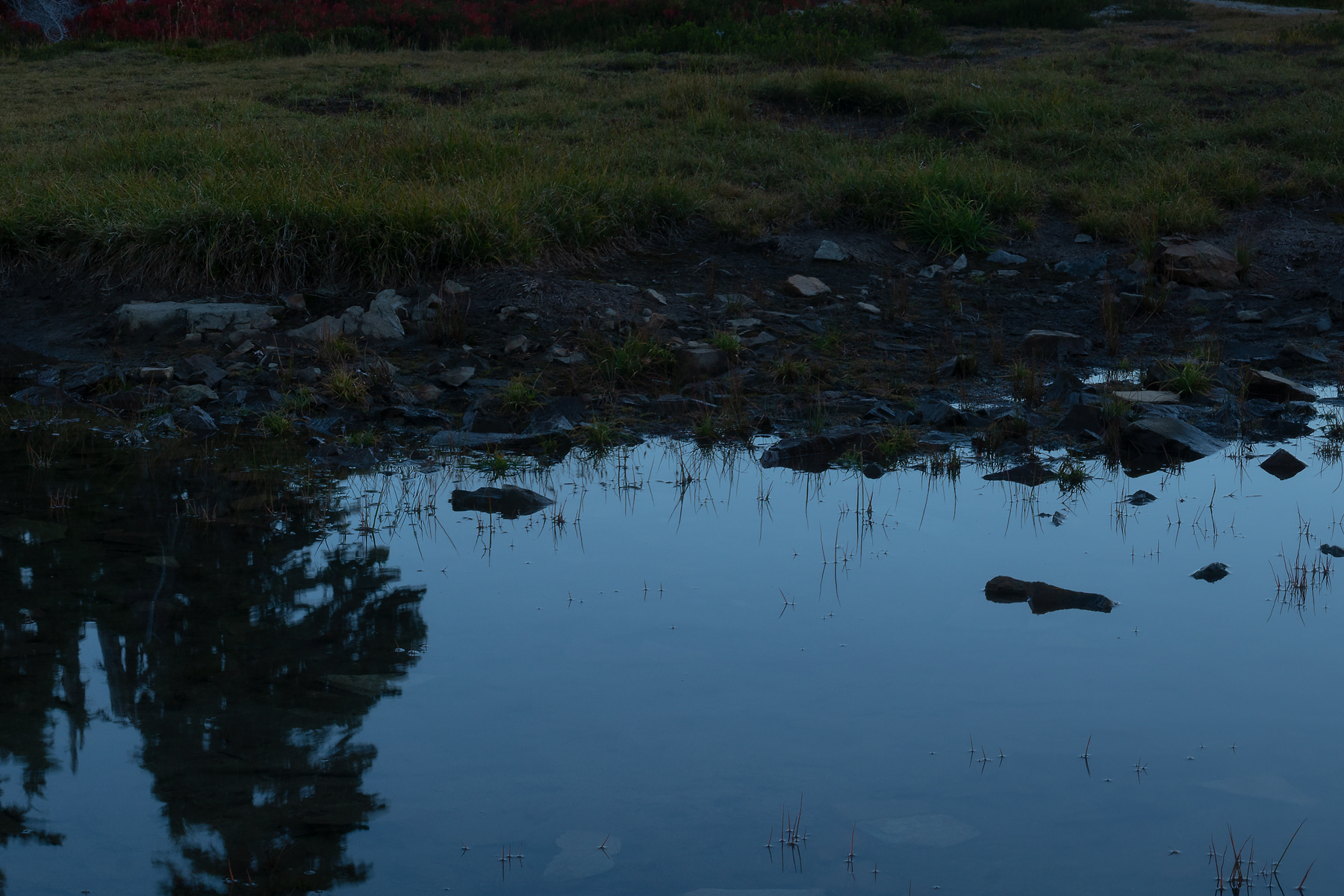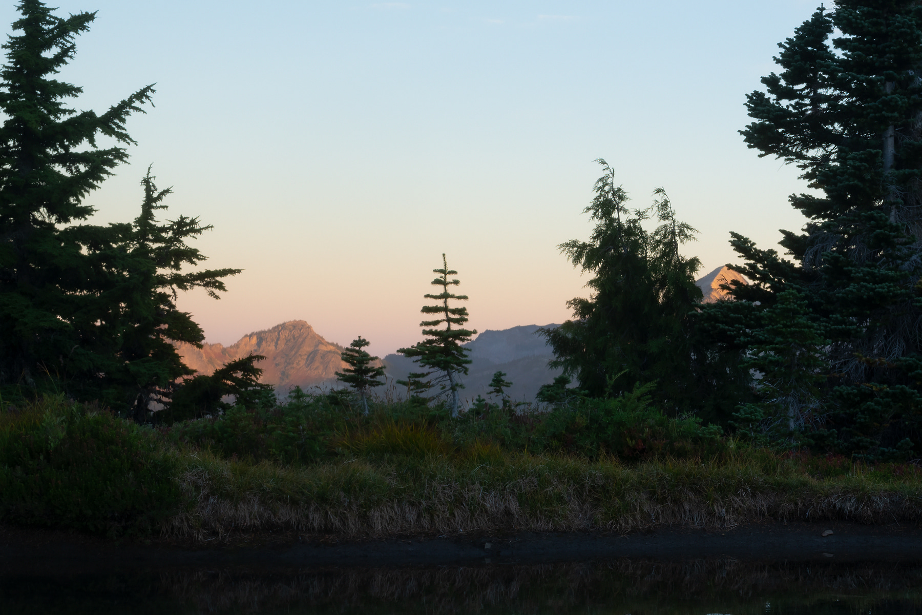 This is not the well know Reflection Lake but its close, kinda. This is a very small alpine tarn or pond. Its about 18-20 inches deep and maybe 15 feet across and 50 feet long and Mt. Rainier fills it up perfectly. This is a location that showing up late isn't going to work so that means getting on the trail an hour and a half before sunrise so you have time to hike to this out of the way spot and compose the image.