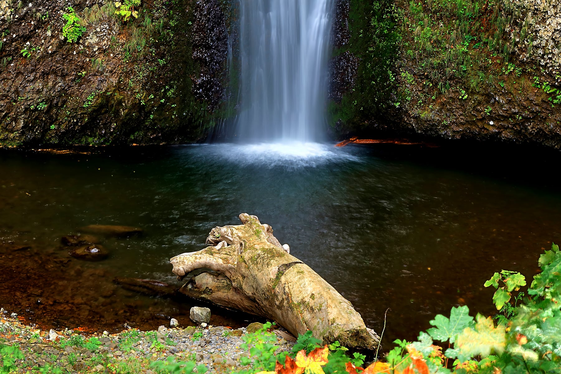 The first of a series of waterfalls along the Columbia River Gorge in Portland, Oregon. Accessible from the historic Columbia River Gorge Highway it spans two tiers and is the largest waterfall in Oregon at 620 feet. The bridge was built by Italian stonemasons and was financed by a Portland local, Simon Benson.