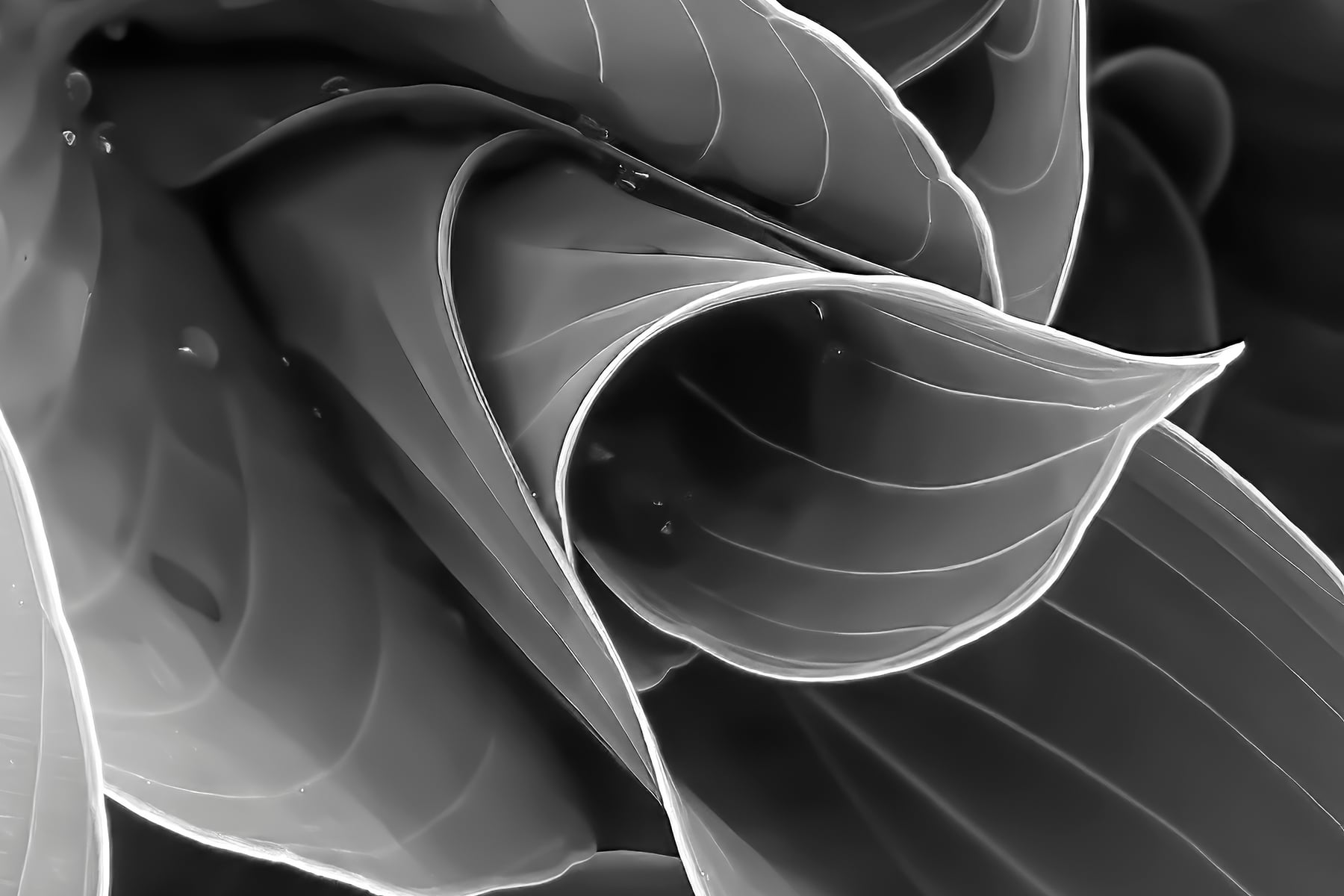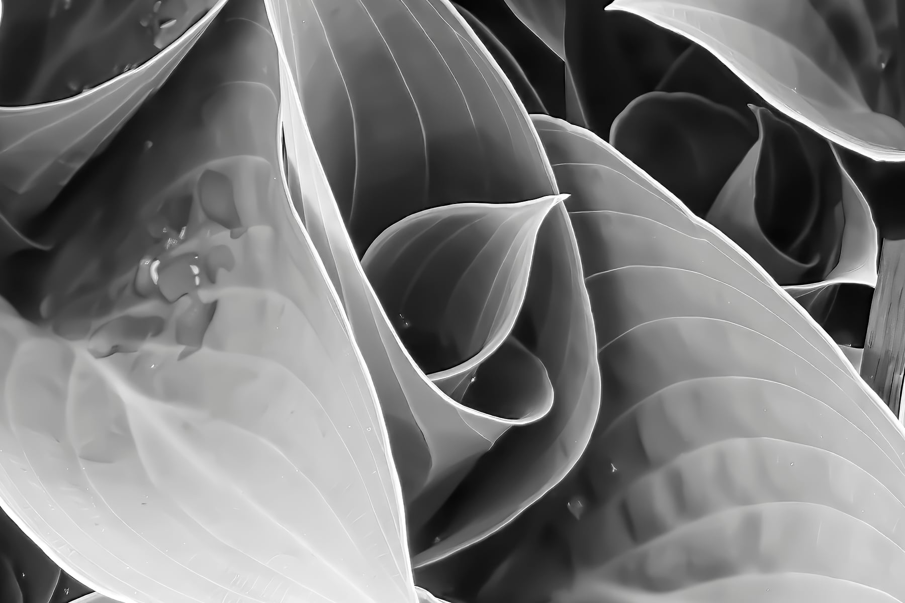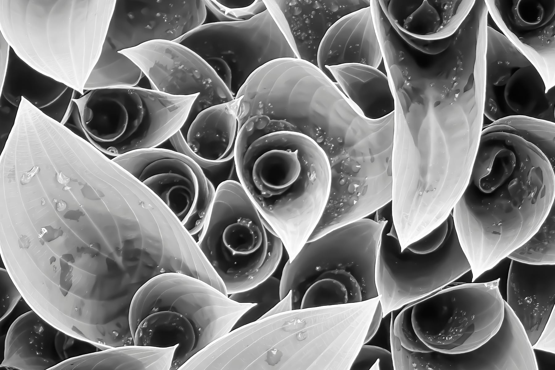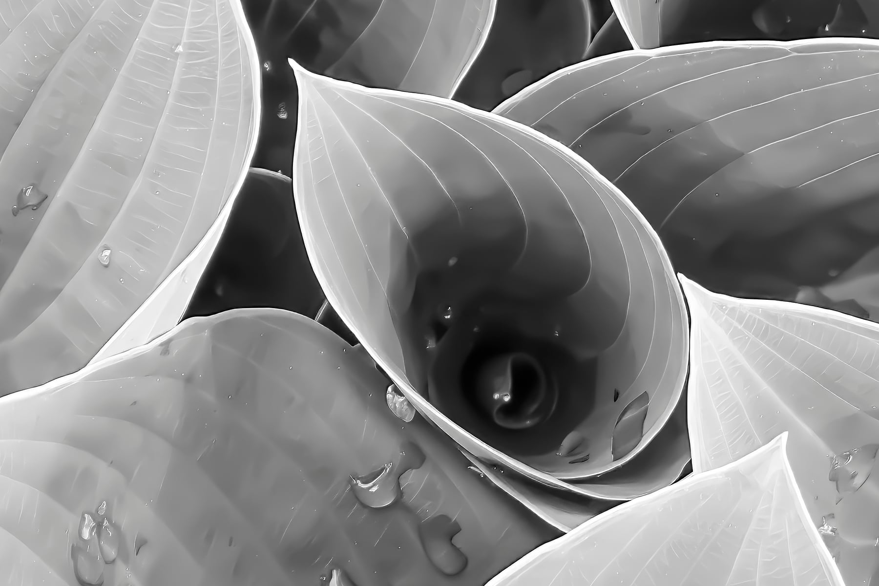 A light morning rain had just fallen and I was at the New York Botanical Garden with the aim of capturing a particular "Snowdrift" Crabapple tree. After a few hours spent creating that photo, I was walking through the Luce Herb Garden when I spotted a low-lying patch of hosta whose fresh leaves were still in the process of unfurling.