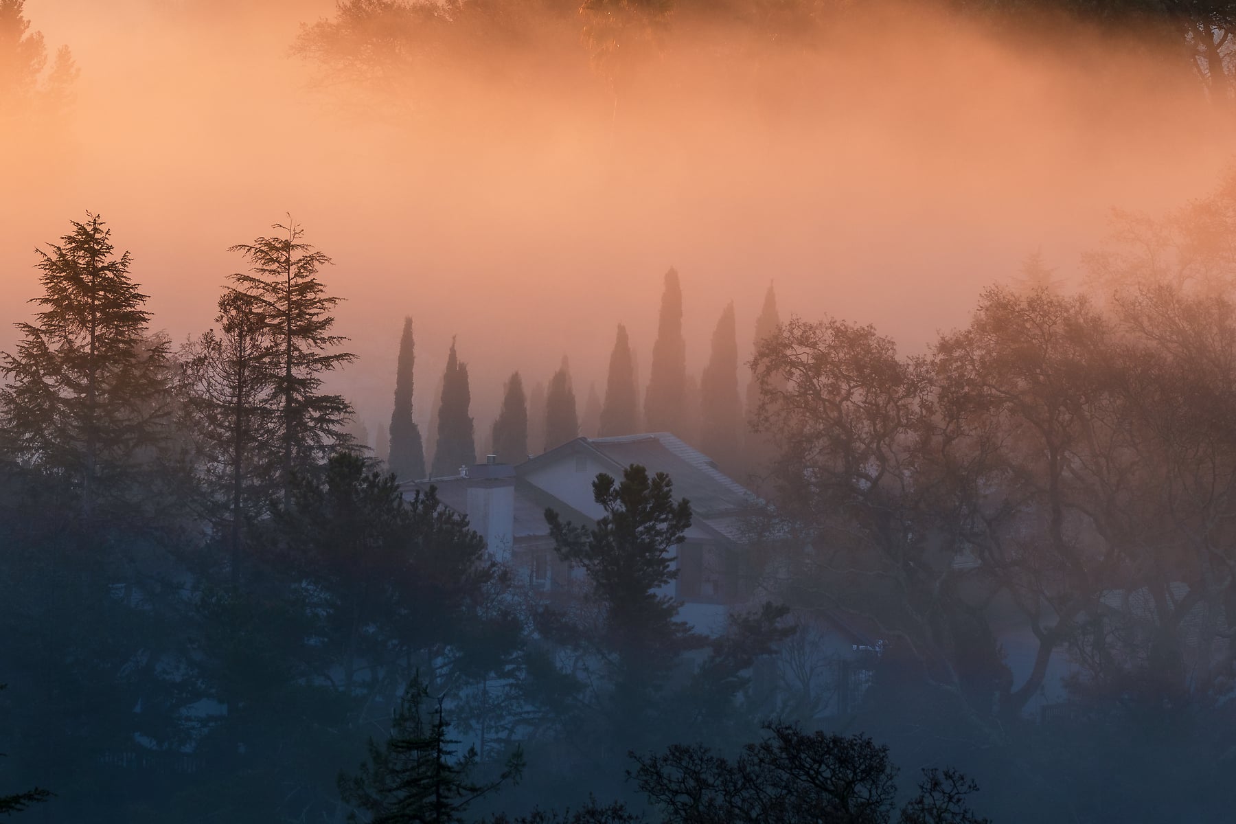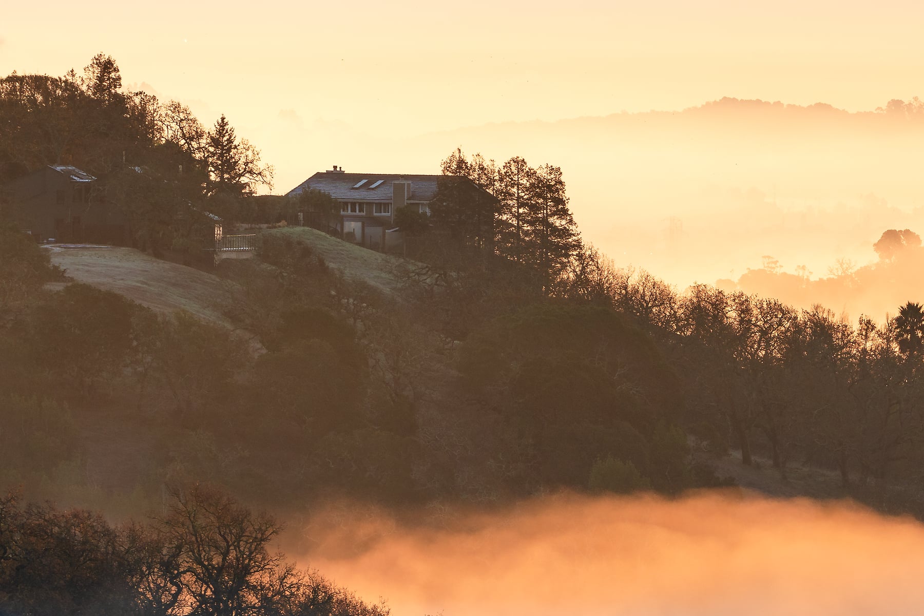 The hills of the Bay Area are endless sources of inspiration, for photography, hiking, and wandering. On this brisk morning, I decided to go for a hike at the crack of dawn, to get above the fog inversion and see what the first light would bring. It was quite a treat, and the clear air allowed me to capture it in high resolution as a VAST photo! It was amazing to watch the fog changing constantly, with the trees and homes of my hometown poking above. I intentionally kept the grass in the foreground soft, to add to the magical mood. See my profile for another image from the same morning that is even higher resolution, but this one is still very highly detailed and the light here is one of the most special moments I have experienced in the north bay.