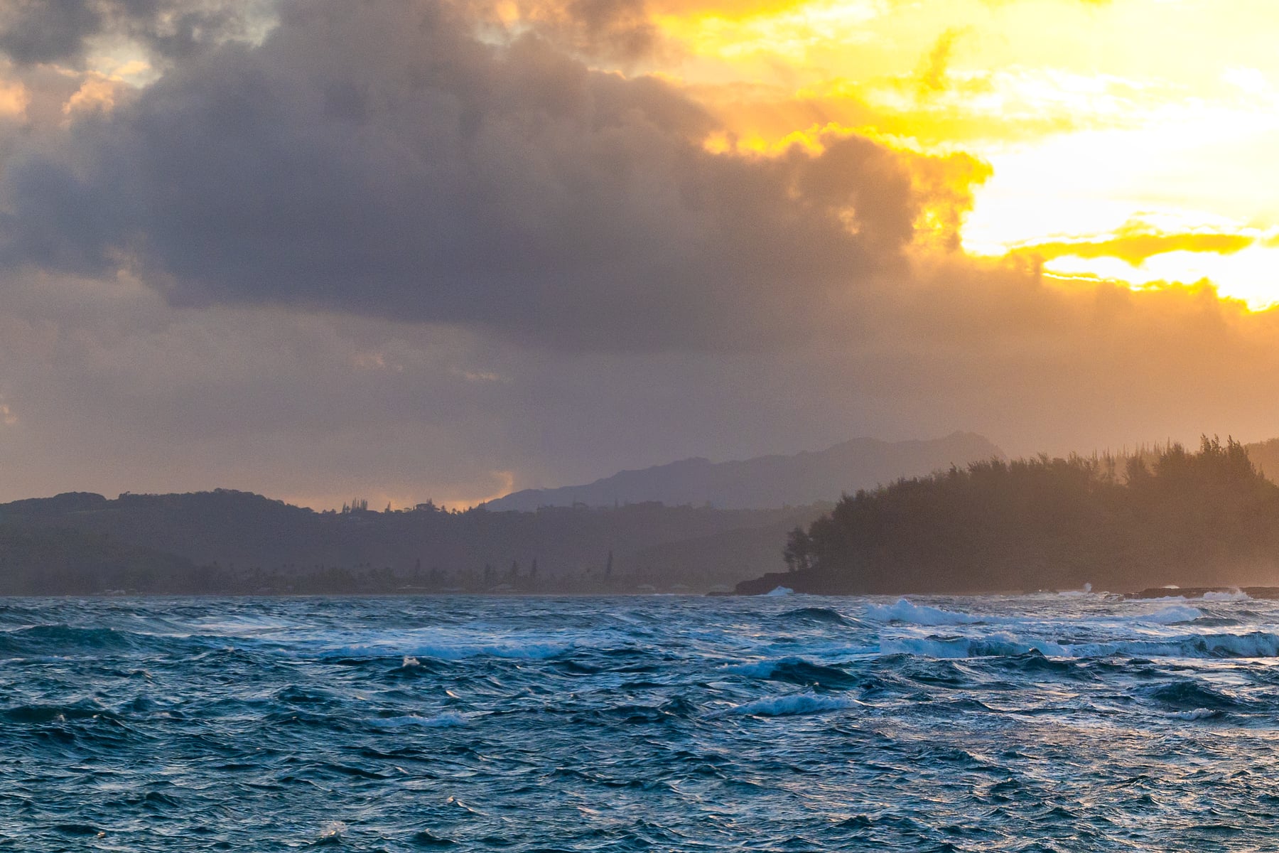 First light spreads softly over the north shore of Kauai, brushing the clouds, waves, and wet sand with a glow that feels almost unreal in its calm. Standing alone on the beach near Hanalei Bay, before the day’s first footprints appear, you’re wrapped in the quiet rhythm of the surf and the sense that this moment is yours and yours alone.