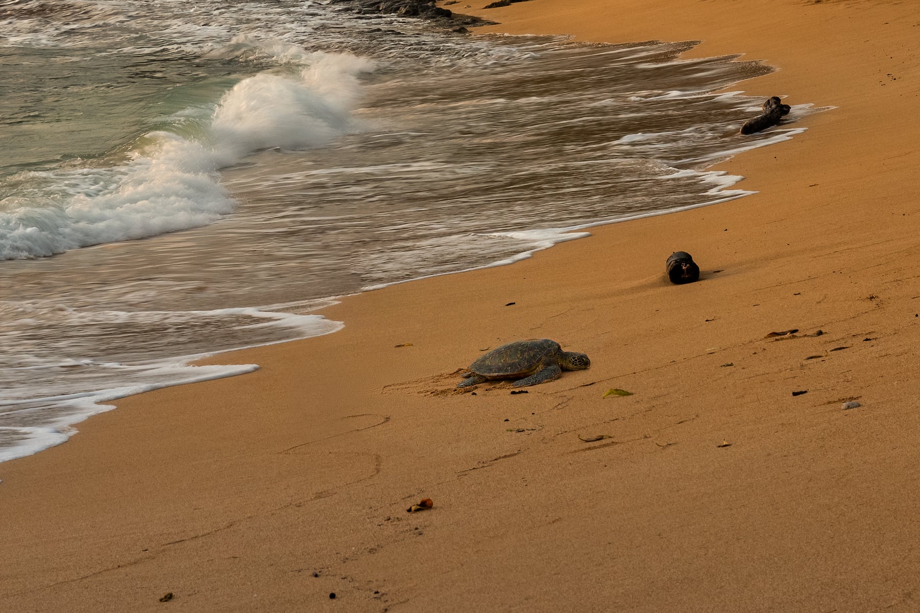 For me, the north shore of Kauai is a place where time seems to slow down, where you can simply stand, breathe, and appreciate how extraordinary it is to witness nature on this scale. As a large-format print, this photograph is meant to be that piece of Kauai you can take home—a window back to that empty beach at sunrise, where the light, the ocean, and the stillness of the turtle invite you to pause and feel it all over again.