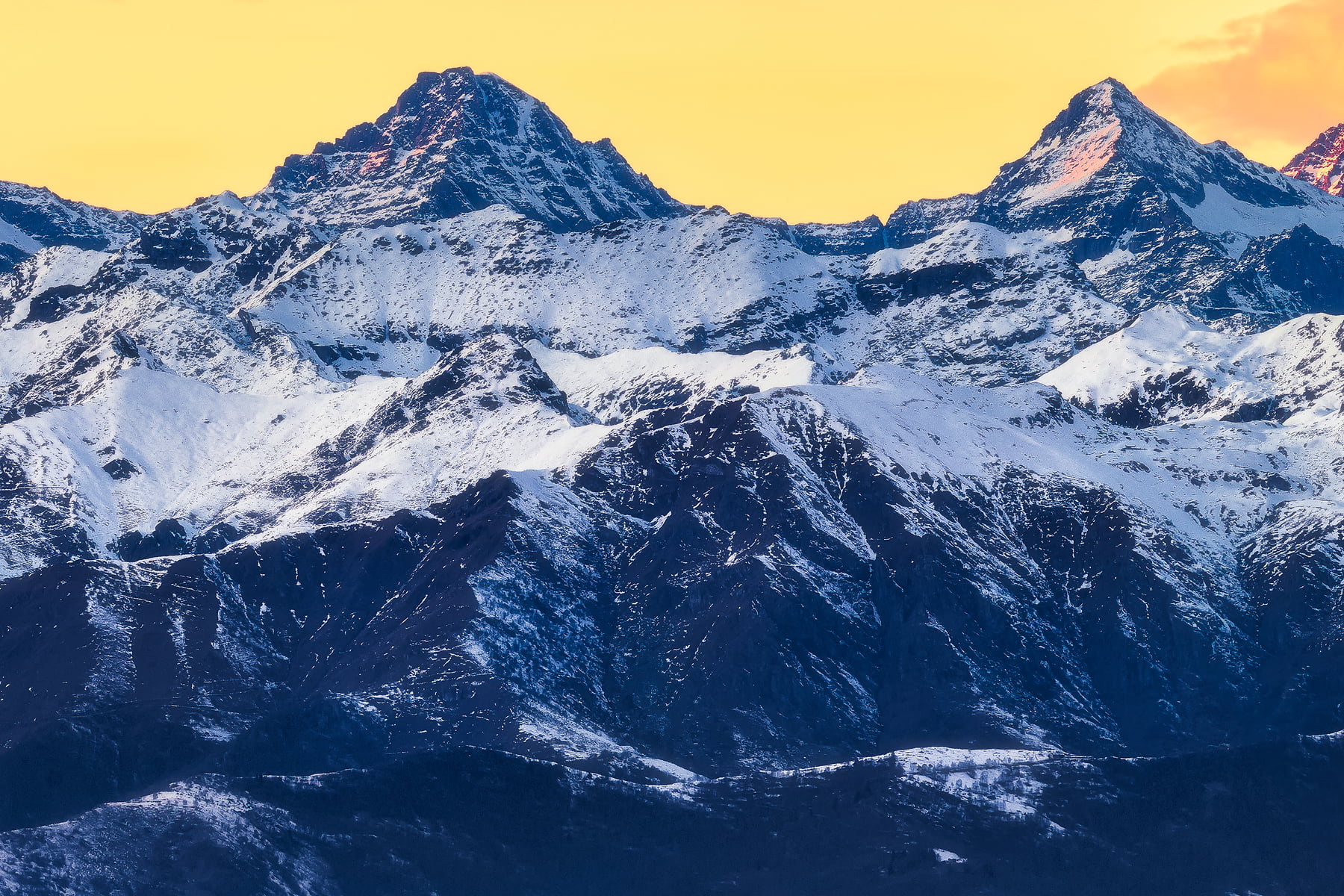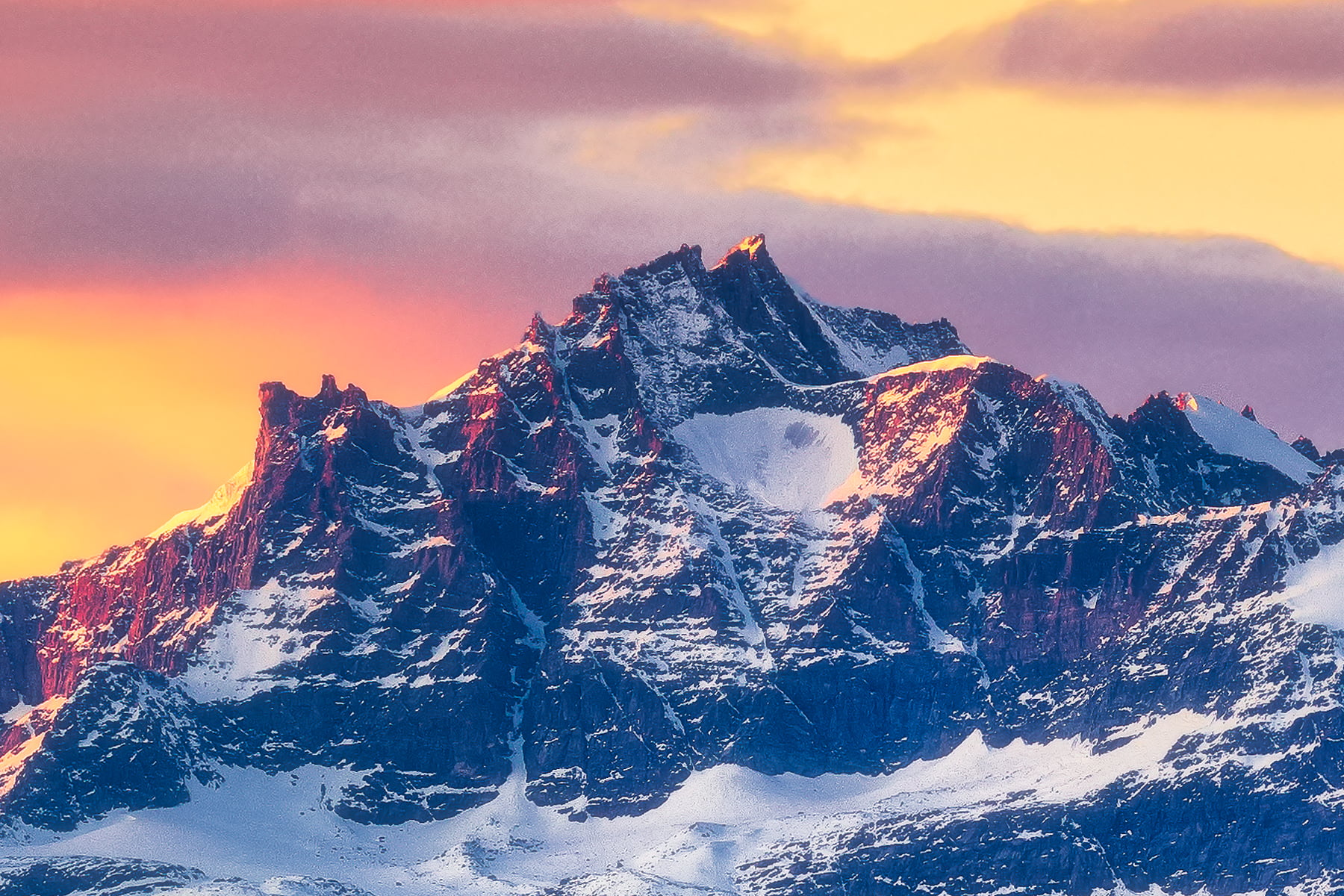 In this photo you can see the Gran Paradiso massif at sunset: under the mists and pollution cover the plain, while at high altitude the mountains are always clear with the snow falling on December 8, 2021
