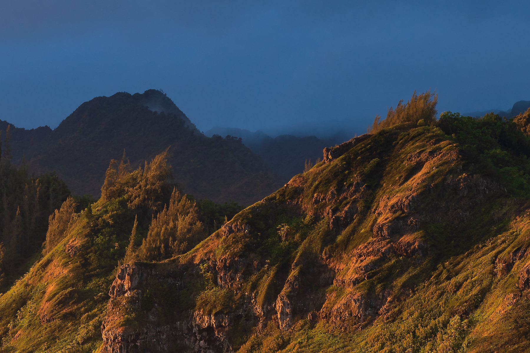 With low clouds and showers, the weather changes quickly on the windward side. One location may be clouded in, while just a few miles away, there could be an impressive light show. Thankfully, I've chased light full-time for a decade, so, challenge accepted!