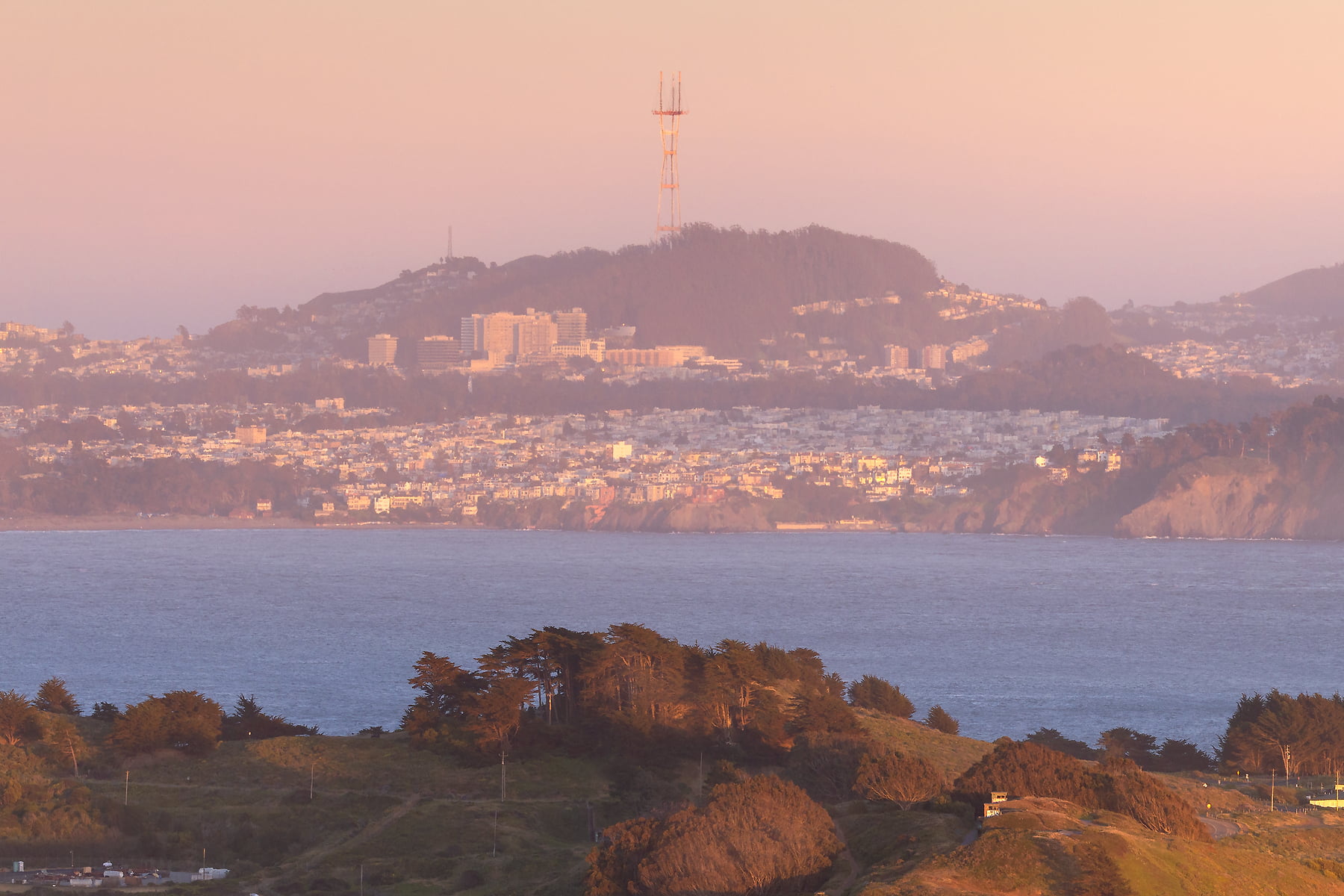 I was initially thinking to find a view of the city and skyline, so I could zoom way in and catch it up close. But not much could have prepared me for the visual feast of golden light, right as the moon came up. I knew I had to show a larger scene, with the complete view of the San Francisco skyline, and the beautiful Marin Headlands in the foreground.