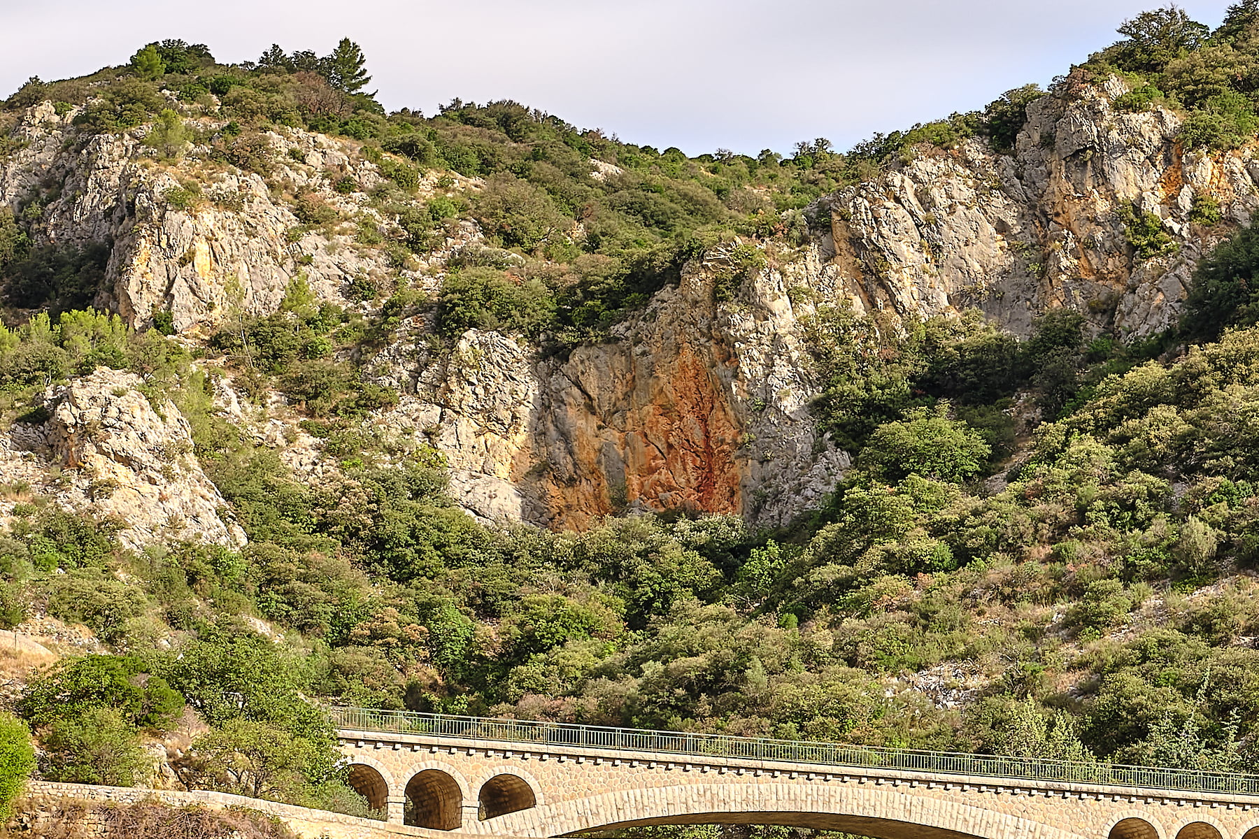 Built of limestone from the river gorge between 1025 AD and 1031 AD, this is one of the oldest Romanesque bridges in France. At 15 meters (49 feet) high and approximately 50 meters (164 feet) long, it consists of two main arches and two secondary openings to facilitate the flow of water during flooding events. The bridge, solidly anchored in rock, crosses the river at its most narrow point and marks the entrance of the Hérault Gorge. For over 1,000 years it has resisted the torrential floods of the Hérault river and has marked the passage between the vineyard-covered plain to the south and the hilly shrubland to the north, demonstrating the strength and solidity of its construction. The Pont du Diable is considered a “Grand Site de France” because it is a jewel of culture in the heart of a natural settling.
