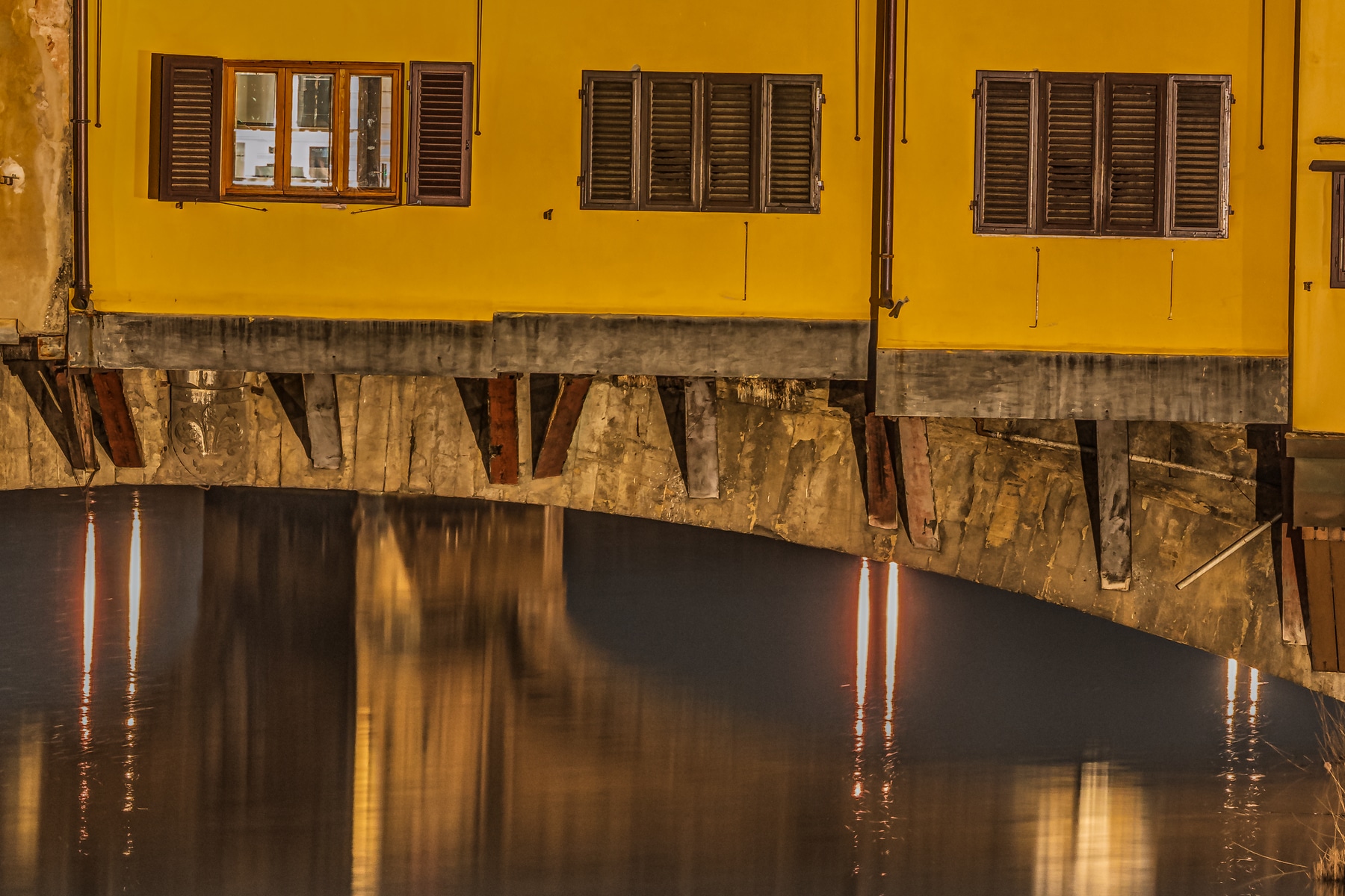 The first precursor of the Ponte Vecchio was already built by the Romans. This original wooden bridge stood on stone pillars and connected the Via Cassia with both banks of the Arno. Even today, the bridge contains wooden elements from this early period. Particularly impressive is the upper area of the Ponte Vecchio, because there the bridge is built with houses and offers space for apartments and shops.