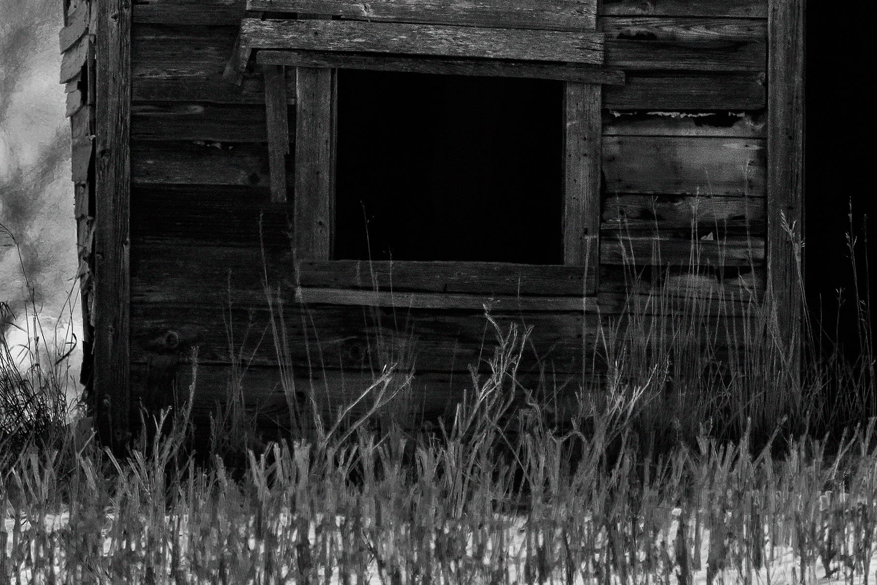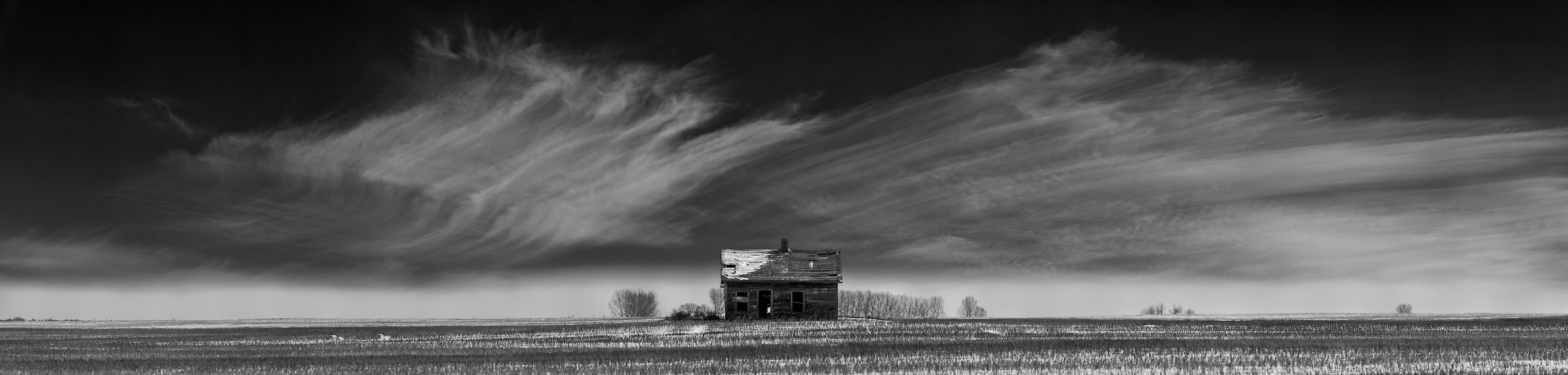1,647 megapixels! A very high resolution, black and white VAST photo print of an abandoned house on a prairie with snow; landscape photograph created by Scott Dimond in Wheatland County, Alberta, Canada.